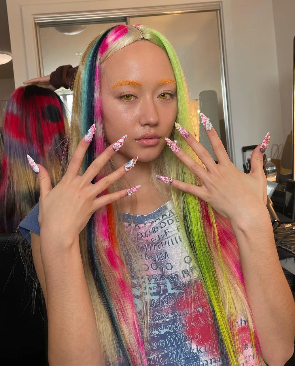 Multicoloured, skunk pop princess hair is cropping up all over the feed, with hairstylists trialling evermore inventive methods that look brilliantly bonkers. Here’s how to get the look for yourself, you wild thing.