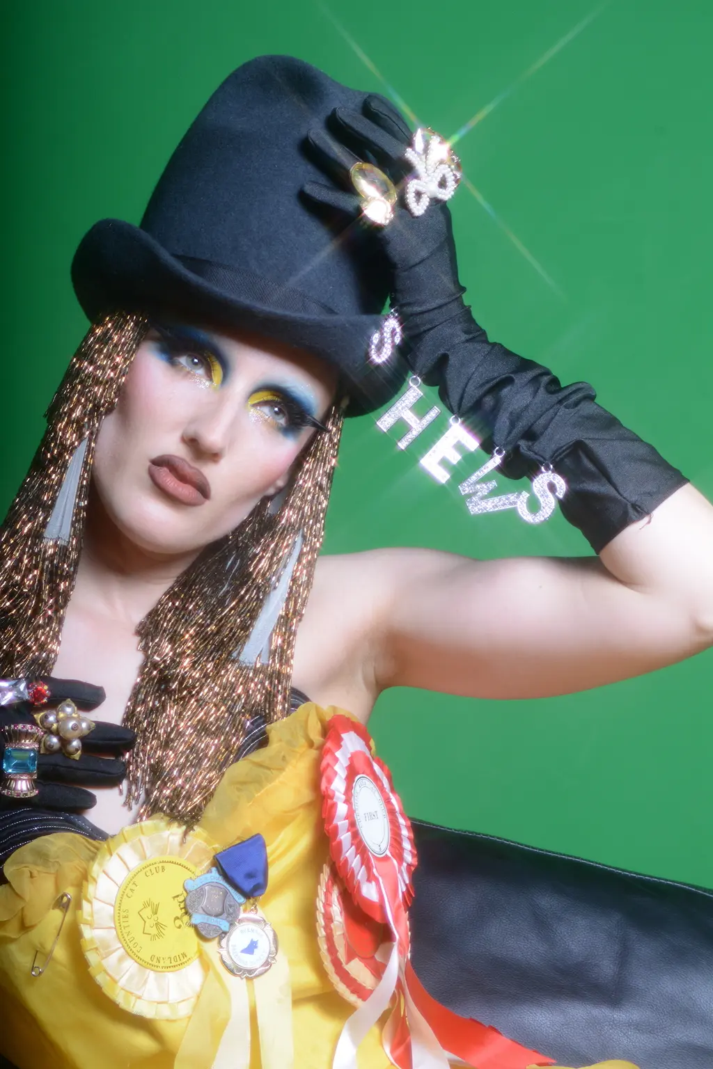 Sexy, confident and downright silly, Bee is in her element whilst in her drag persona. “Drag gives me the freedom and the expression to portray however I feel,” she says, “I love to wear whatever I want.” More often than not, whatever she wants tends towards the camp, sequinned and sexual variety. Think furry cow print chaps with a matching cowboy hat, oversized clown ruffles with red patent boots and not much else, glittering showgirl costumes and macaroni hats.