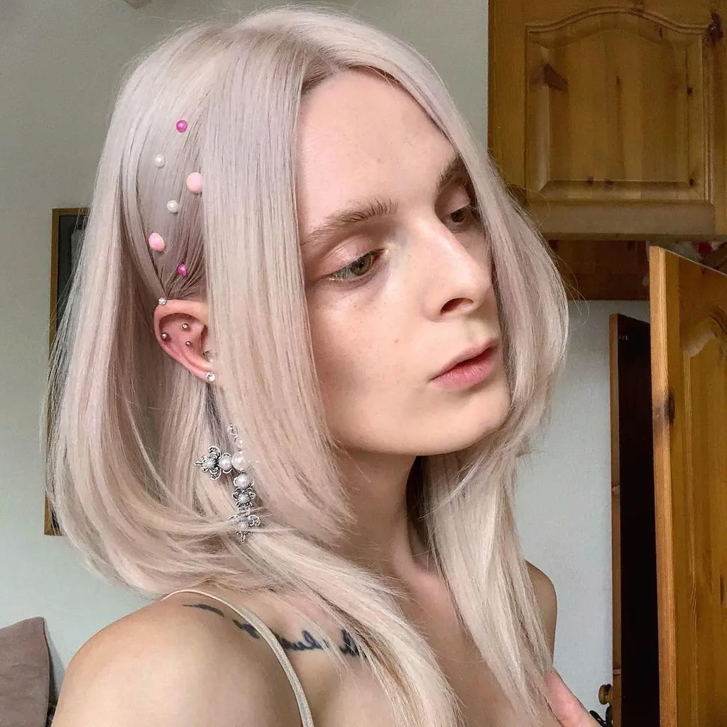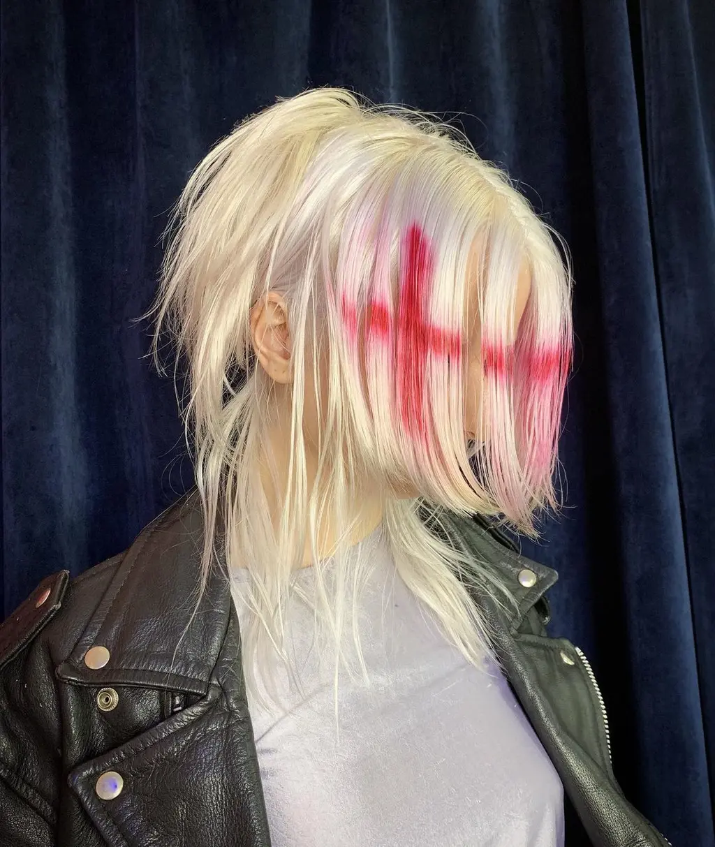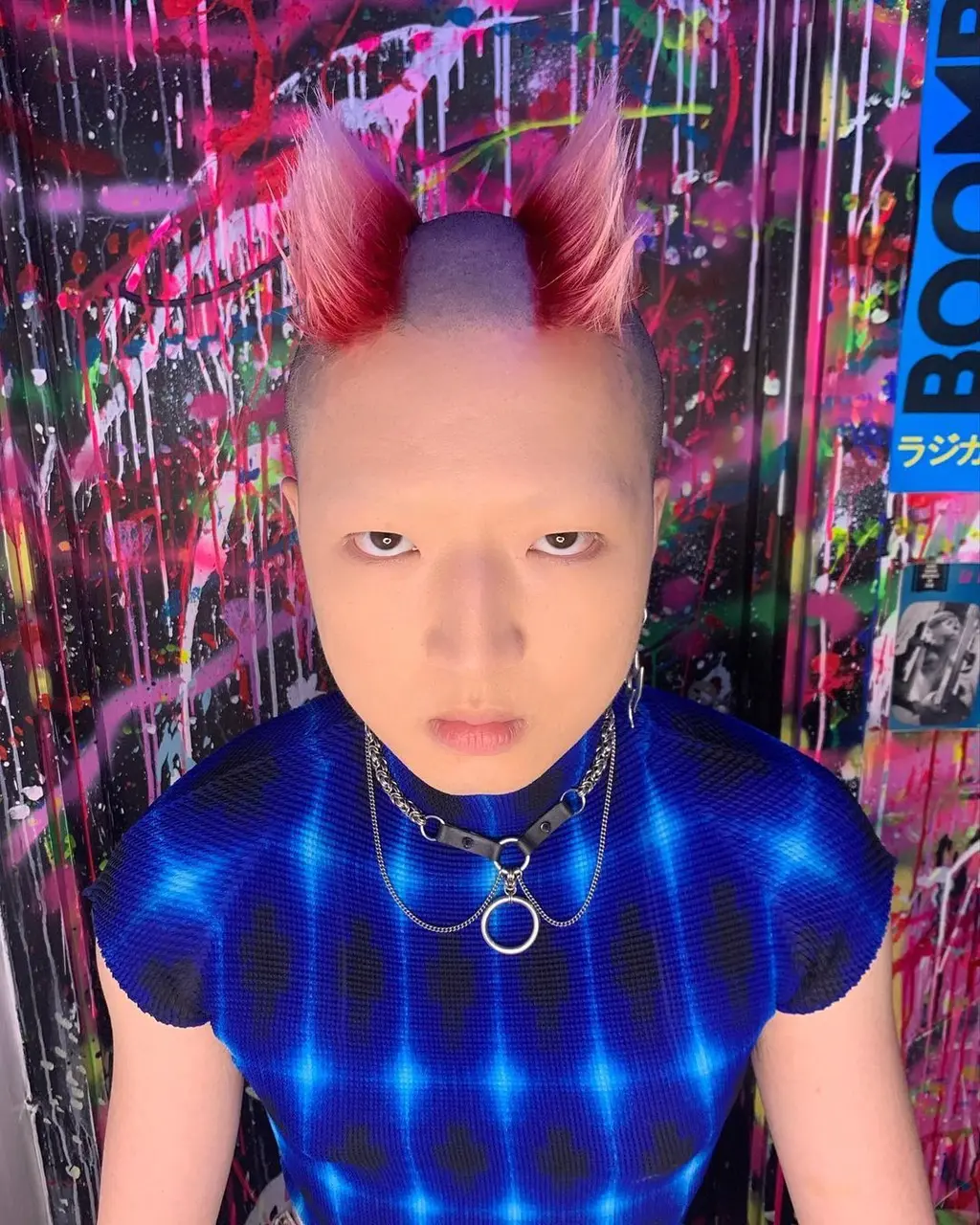 Watari’s style flips between forms, finding references in both the historical and contemporary. On his page, you’ll find a take on Chinese queue hair, an ancient style worn by Manchurians since the 1600s, in fiery reds and ink-jet black. Or a punk-inspired, hot pink mohawk and bright red cross sprayed onto bleach-blonde hair. There’s also Sailor Moon styles, all preened and perfected, and post-mullets that look just the right amount of lived-in.