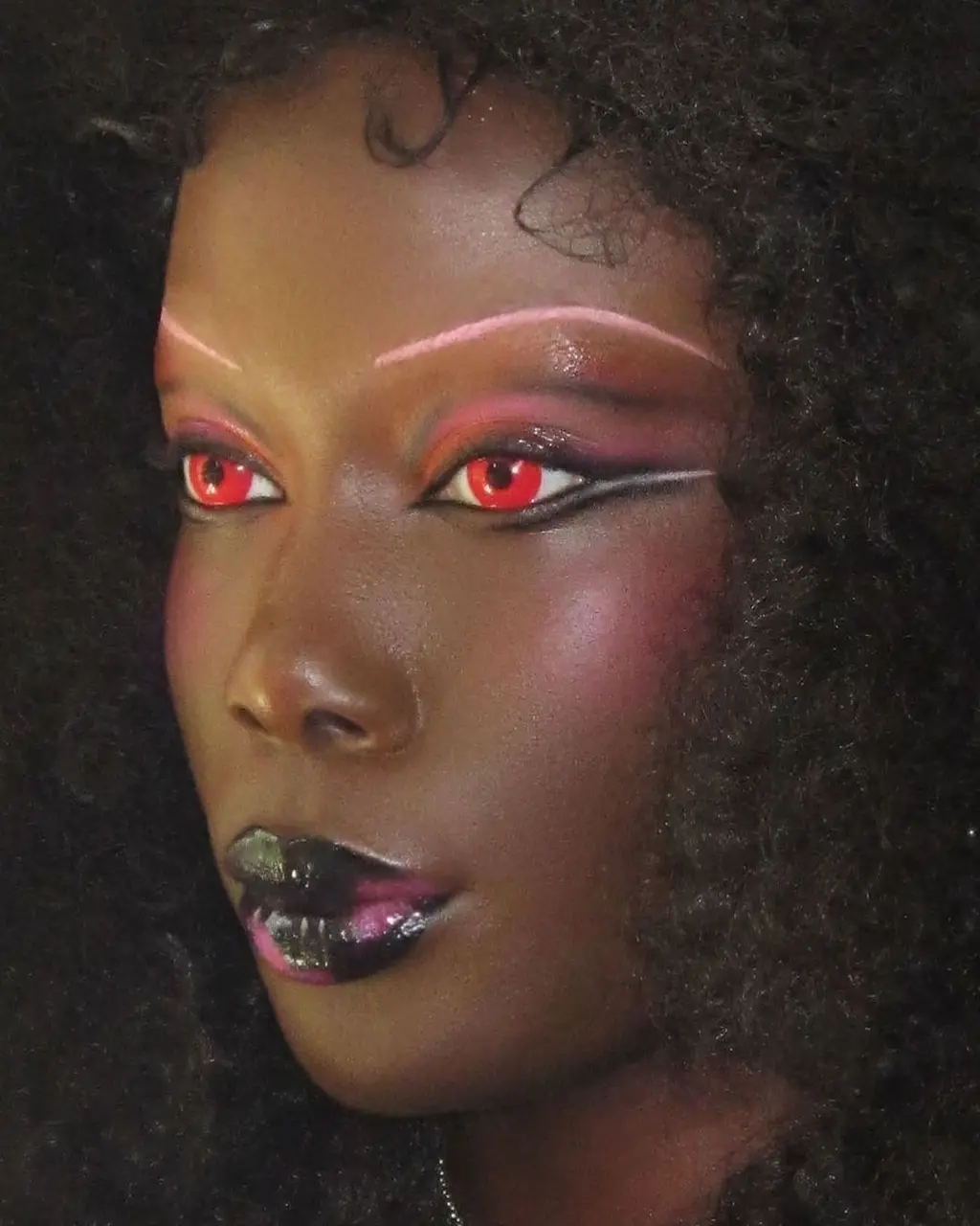 These days, she’s one of the most provocative make-up artists working in London. Entirely self-taught, Dodds’ work slips and slides between sci-fi aliens, sexy goths and page three pin-ups. “I don’t really think of myself as someone who knows loads about fashion, art and all that,” she says. Instead, she finds references in “regular people, like bimbos, porn stars, Katie Price. That’s where a lot of my sexy make-up comes from when I’m looking for inspiration.”