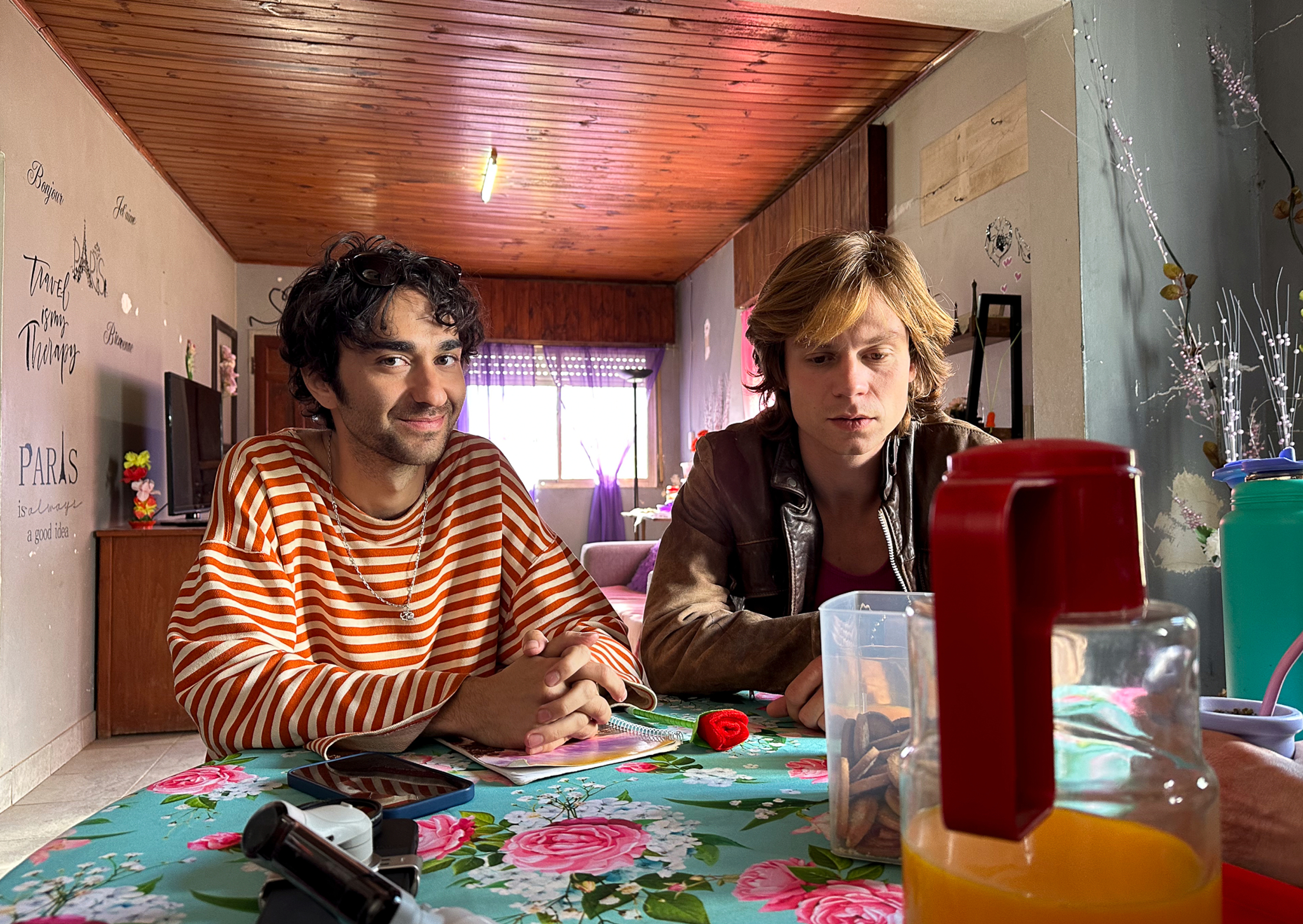 In the film, Chloë Sevigny plays Edna, broadcaster and de facto leader of a motley crew of American journalists from an unnamed media company (which, Ulman points out, is based on the “glory” days of Vice News). Also part of the team on assignment in South America: Jeff, played by Hereditary’s Alex Wolff, a fuckboy who goes through women like packs of tissues; Simon Rex is Dave, Edna’s sleazy husband; and Elena, played by Ulman, is an Argentine editor who begrudgingly doubles up as the group’s translator. Last but not least, there’s Justin, the gay, horny sound guy, played by Ulman’s real-life best friend, Joe Apollonio.