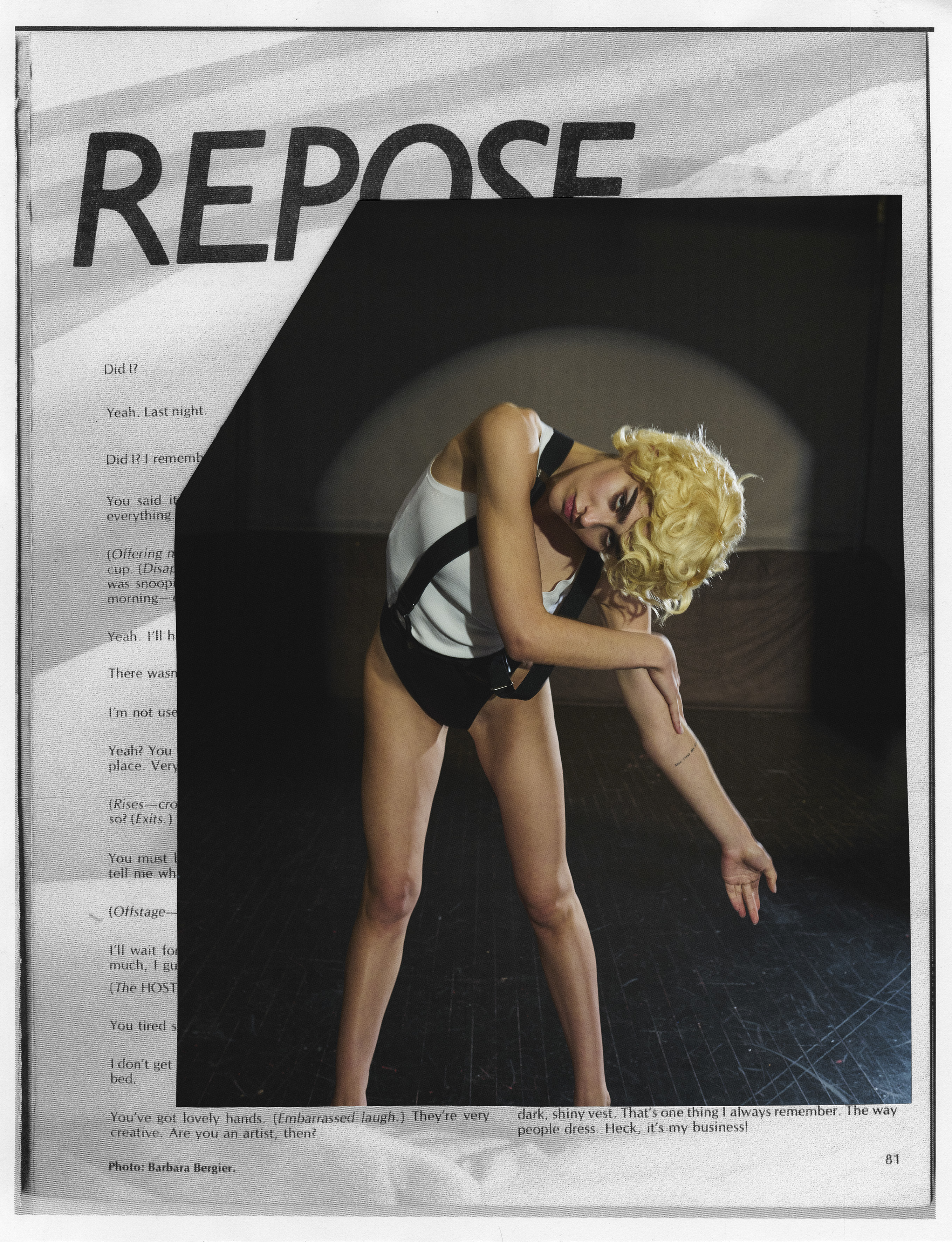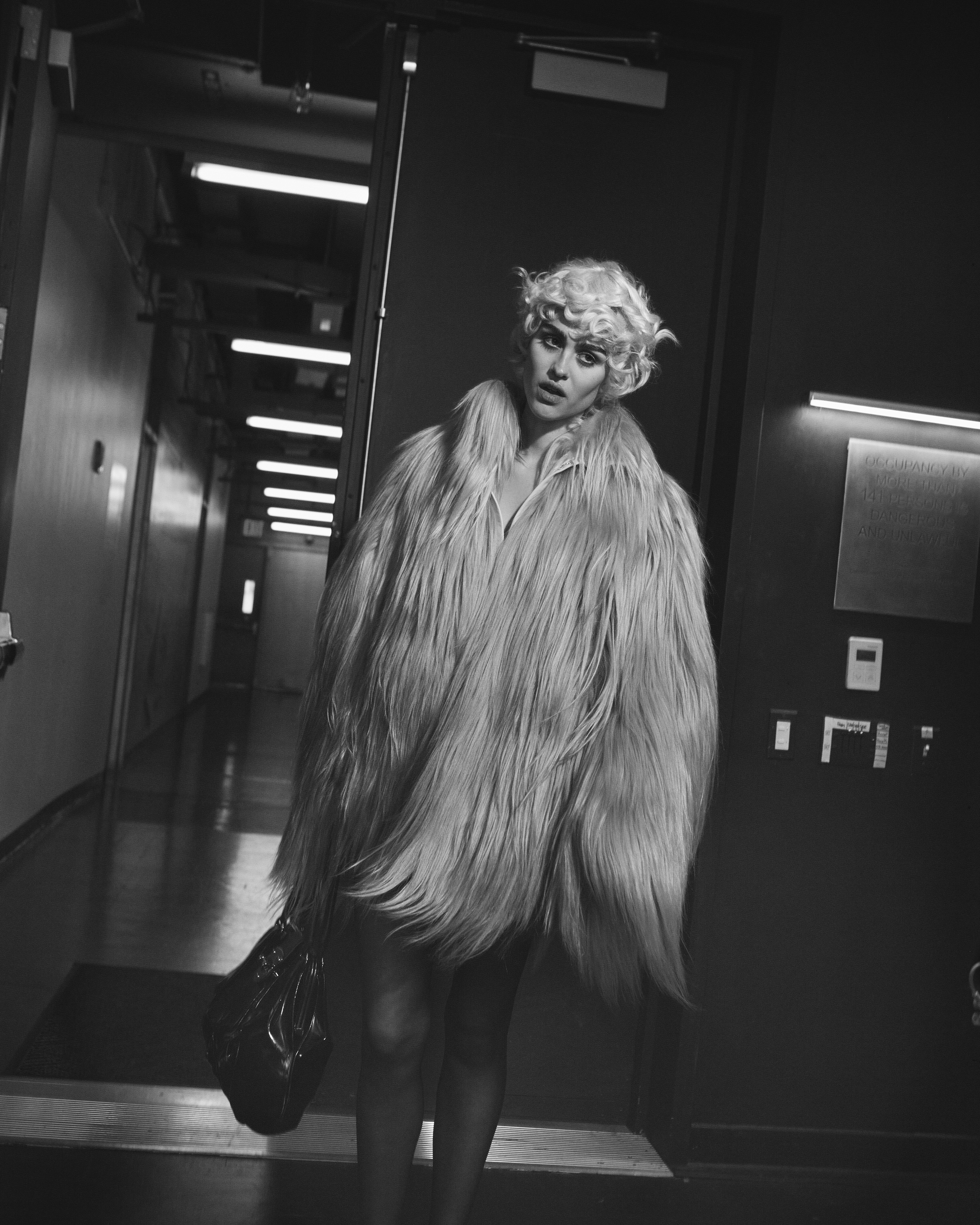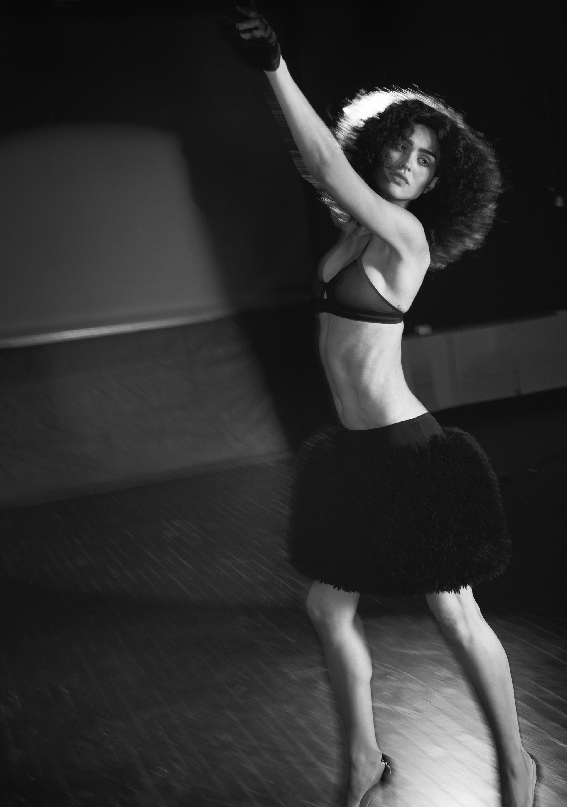 The audience becomes the performer on an imagined stage, starring model Amelia Gray.