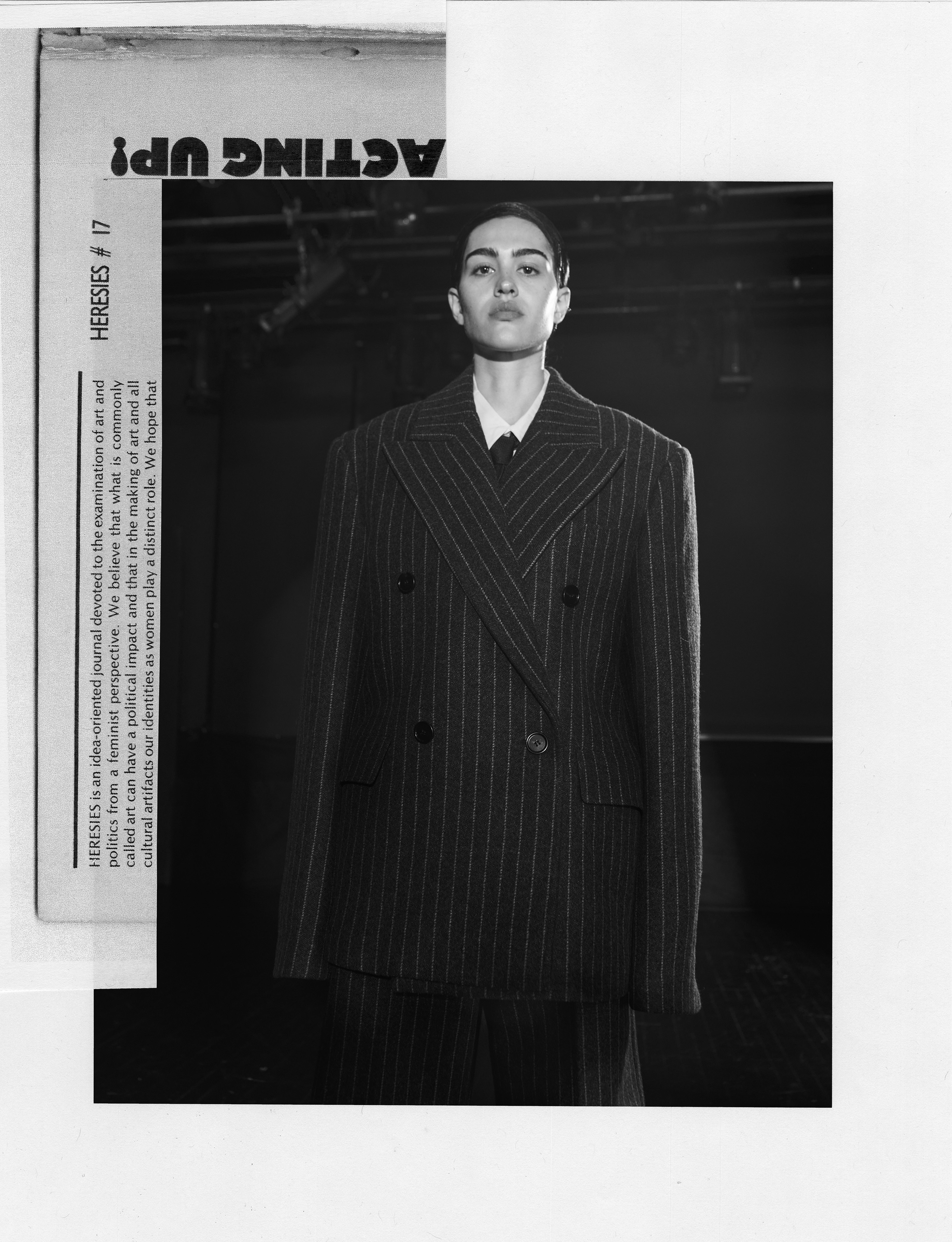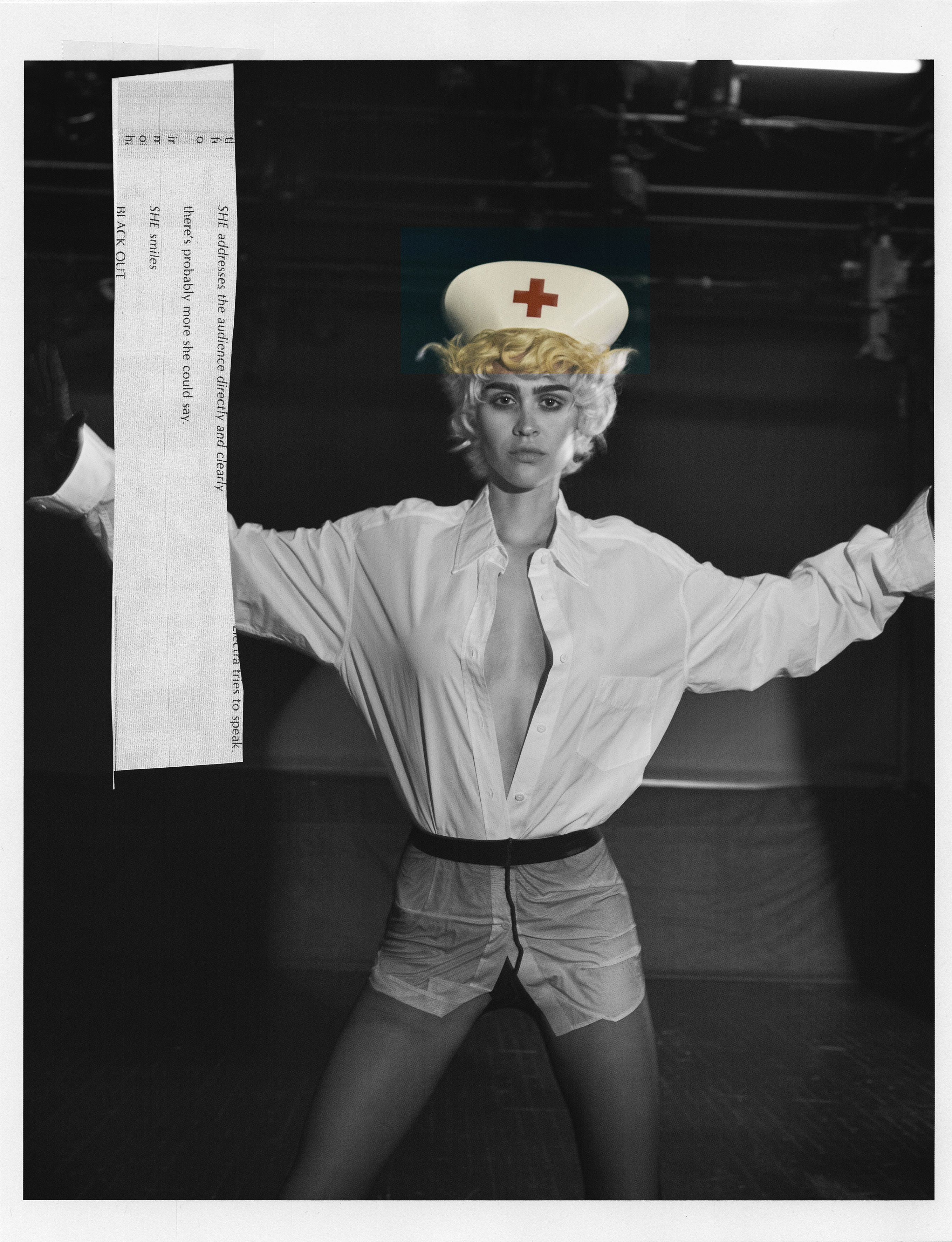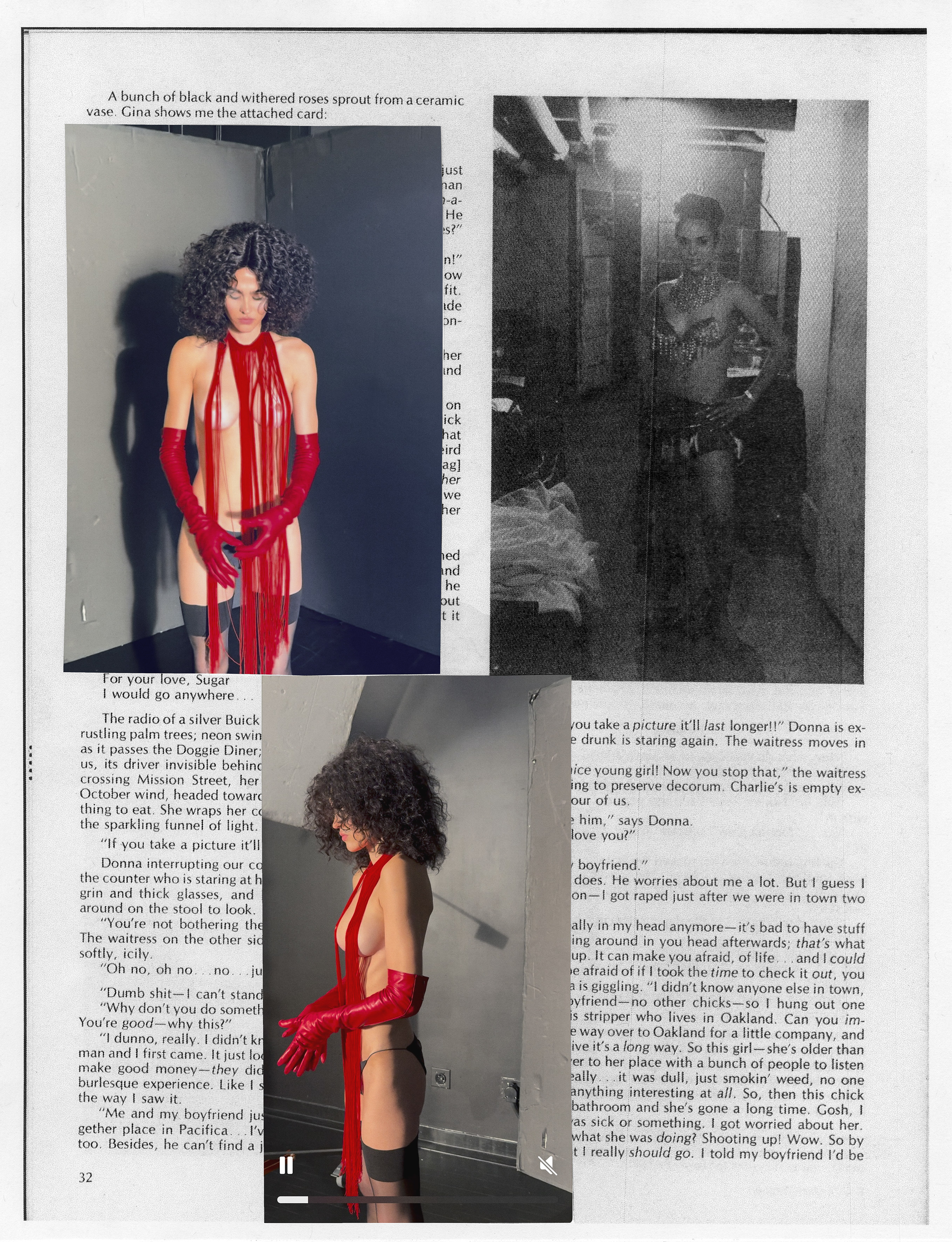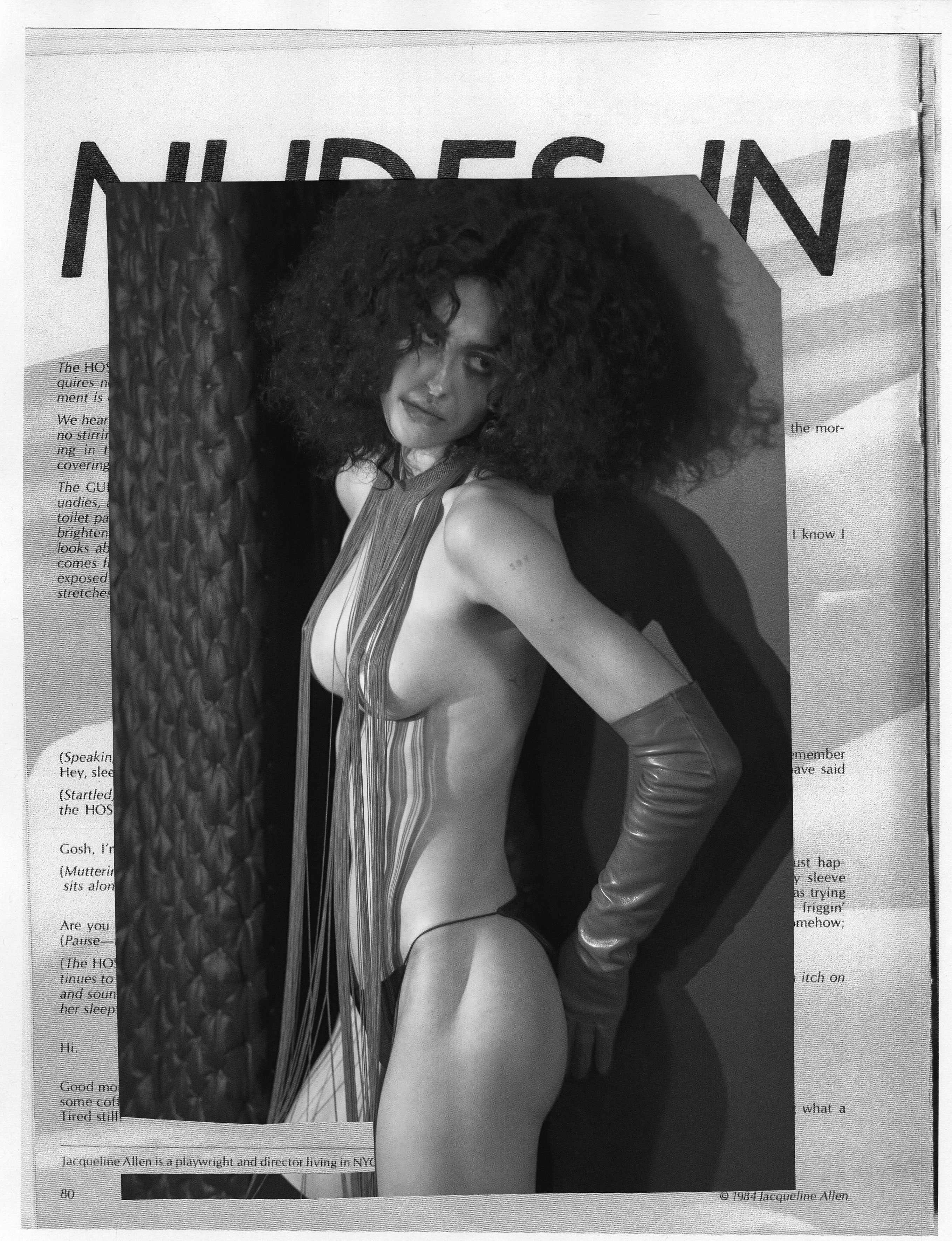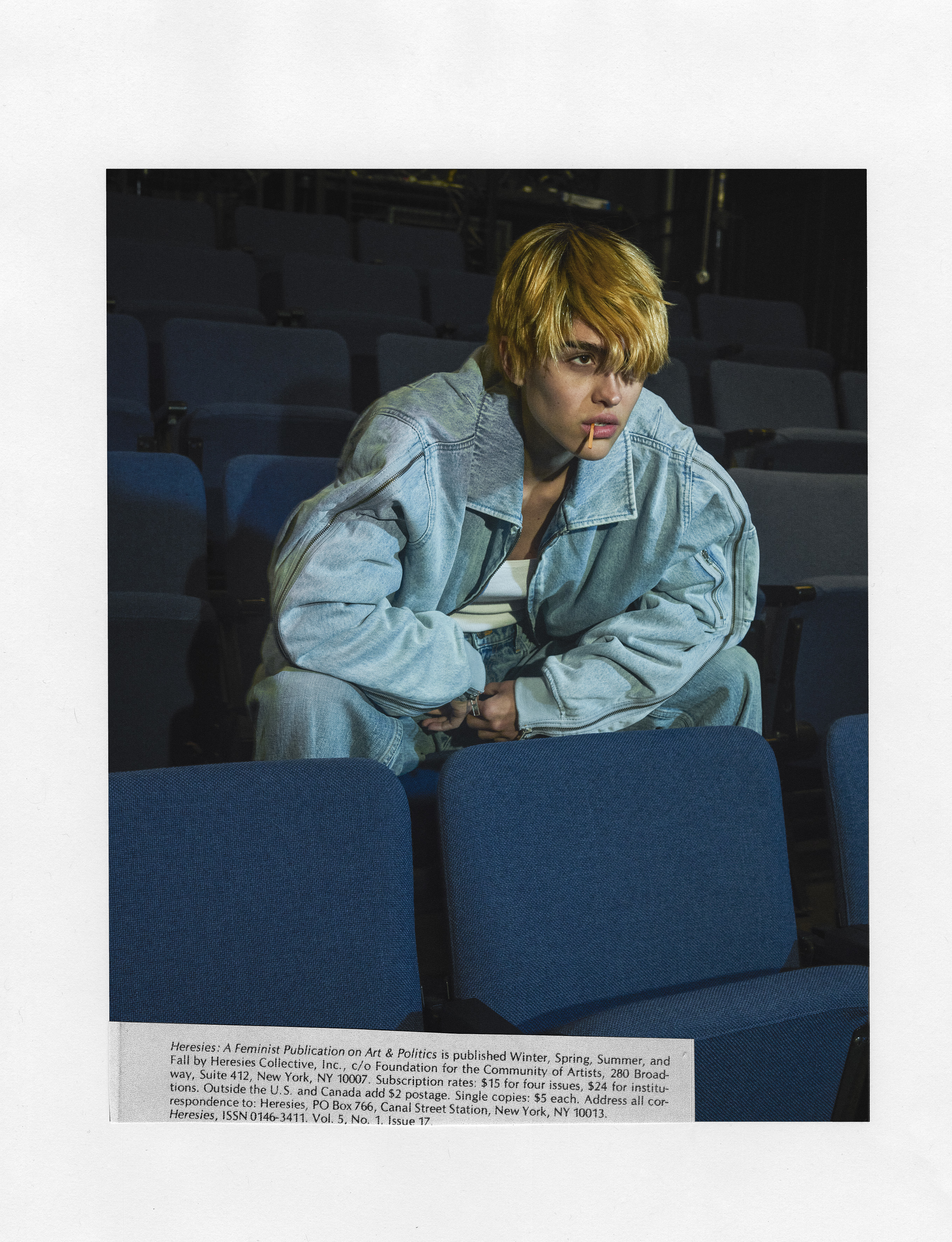 In 2021, walking down the street in Soho I found a 1984 copy of the feminist magazine Heresies. It was in a box of books belonging to the artist Mary Beth Edelson who had recently died. The issue– focused entirely on women directing, writing and performing– struck me as a time capsule of protest and demonstration. Many of the artists I hadn’t heard of. Some, like Meredith Monk, are legends. I collaged these pages into Amelia’s story as so many of the words seemed applicable to her position; of being a body in a world of images rarely accompanied by words. Amelia and I made these performances together. It is her work and mine.