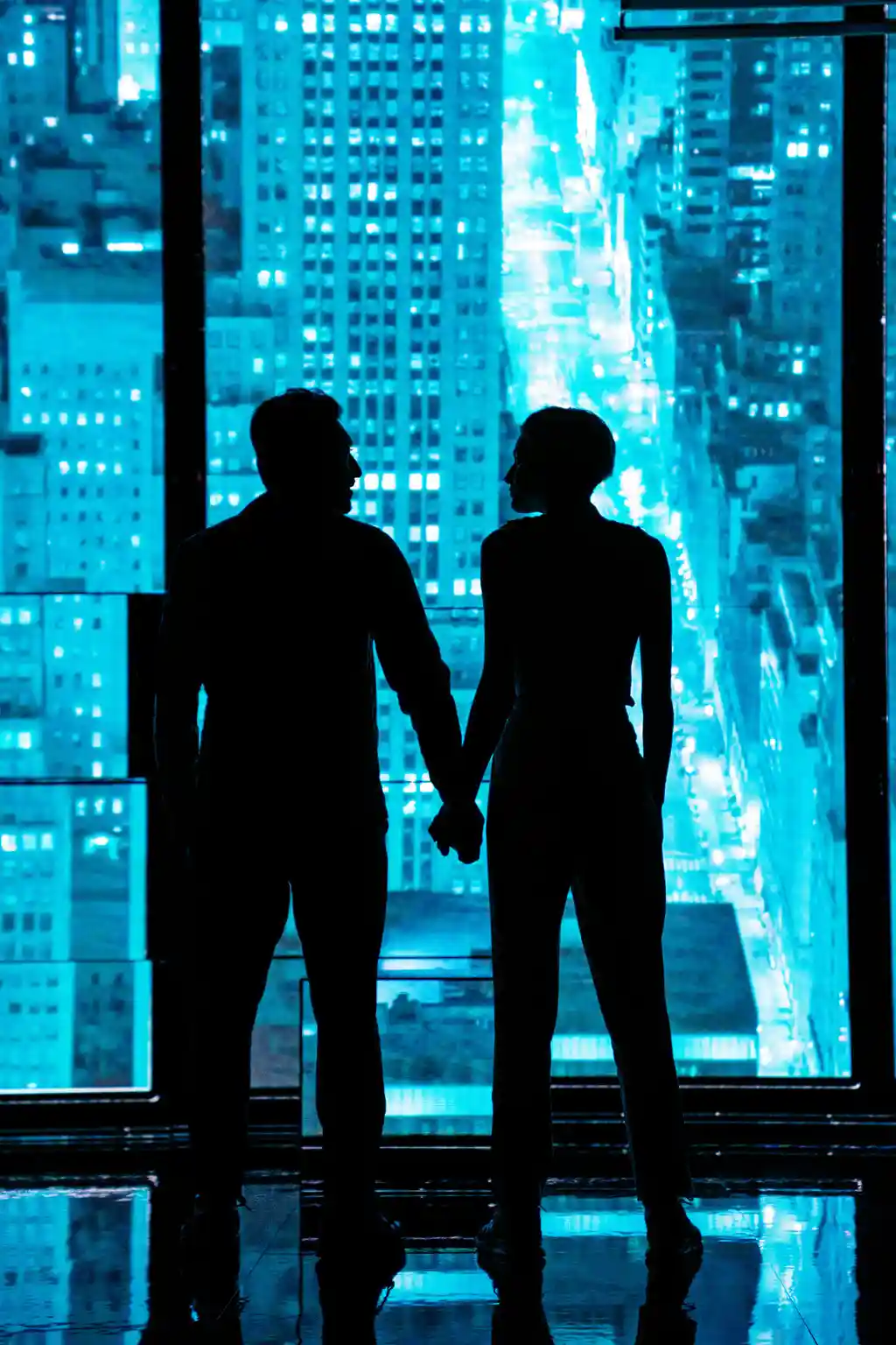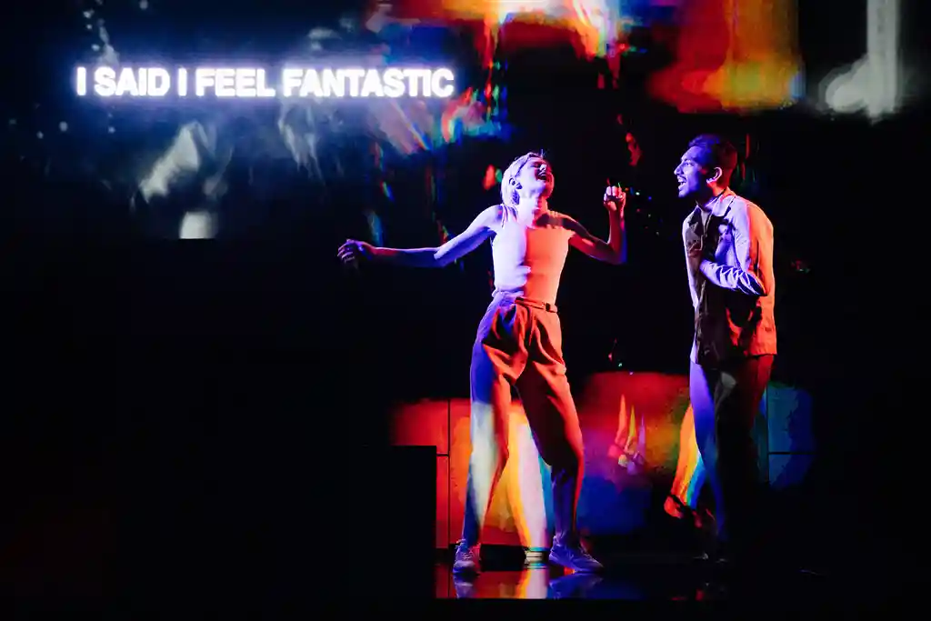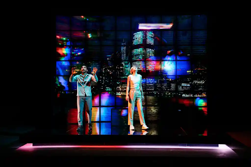 It’s thrilling and intoxicating, with the only critique being that the ultra-immersive set – with video projections jumping from moving cityscapes to nightclubs and dingy elevators – occasionally detracts from Corrin and Rizwan’s impressive monologues and on-stage chemistry. However, Charlton’s razor-sharp storytelling and Corrin’s perfectly-timed quips make this a must-buy ticket.