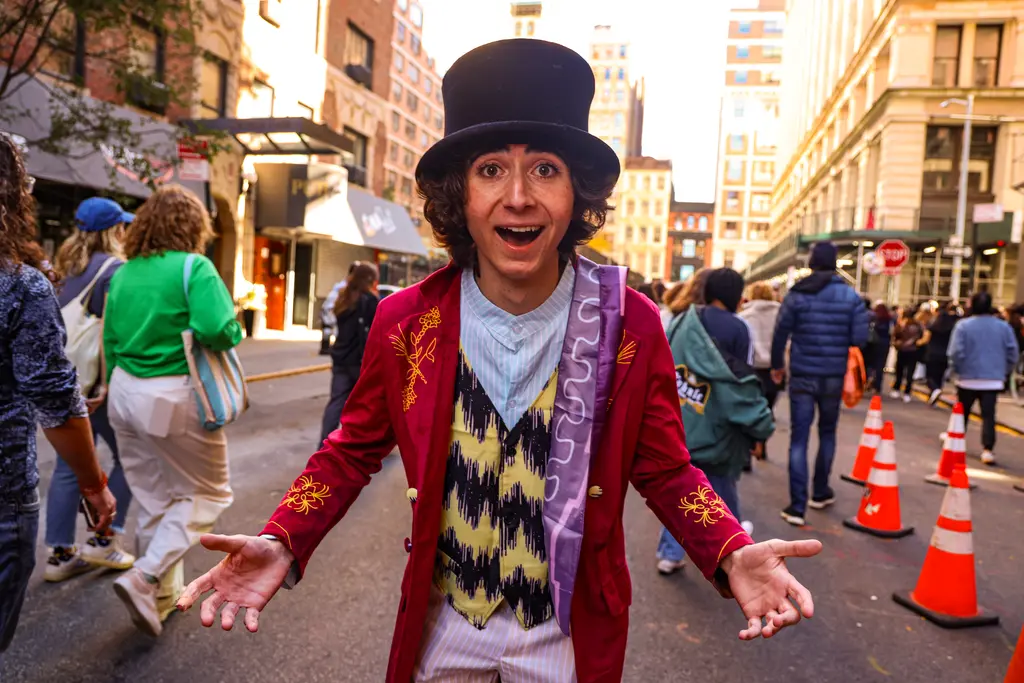 Anthony Po, a 23-year-old Jersey City content creator, who happens to be behind a series of recent internet gags. “I’ve been advised to say no, but I did know [the competition] would get a lot of attention,” he says. Very much on theme, he’s sporting his own Wonka-esque top hat, shirt and bow tie.