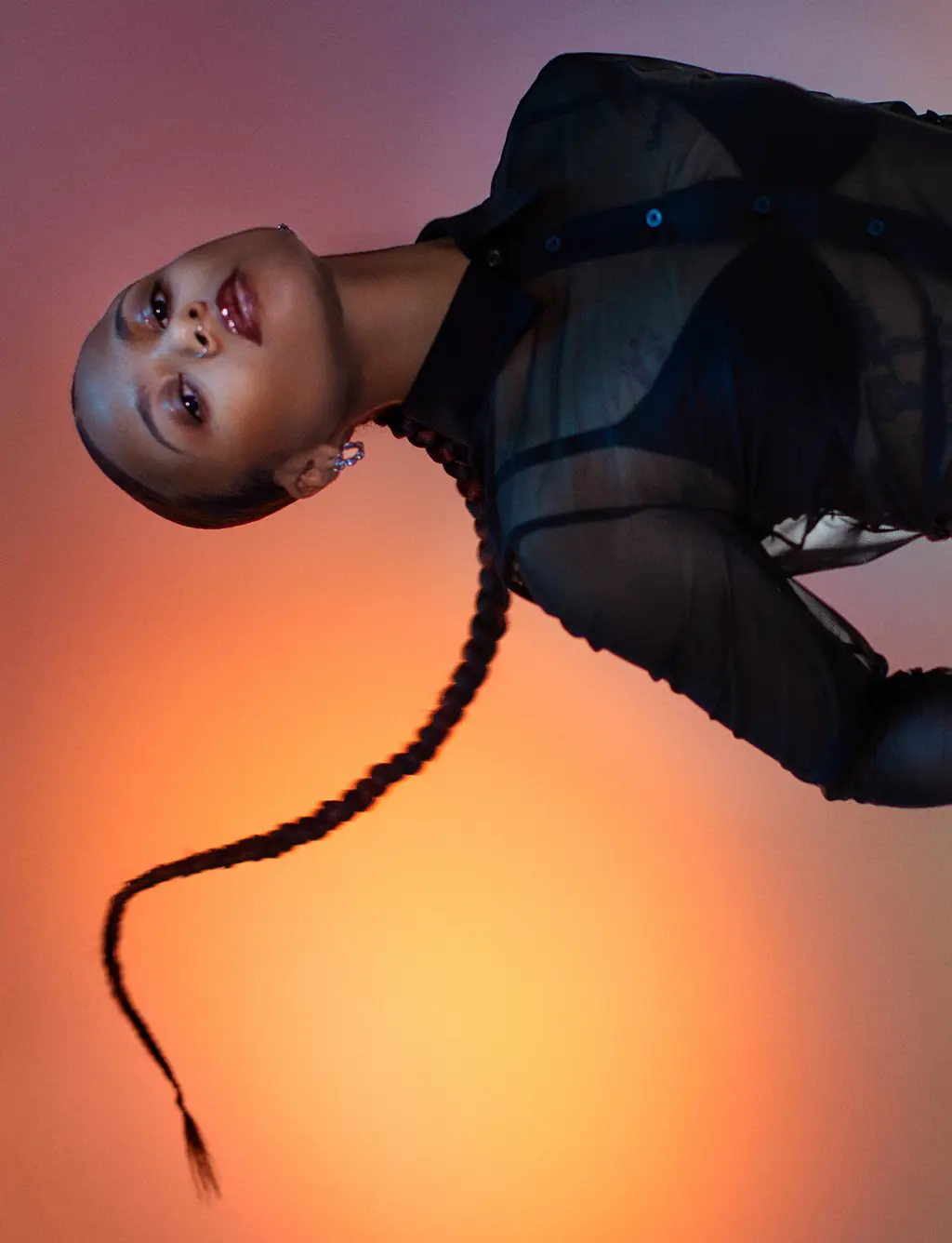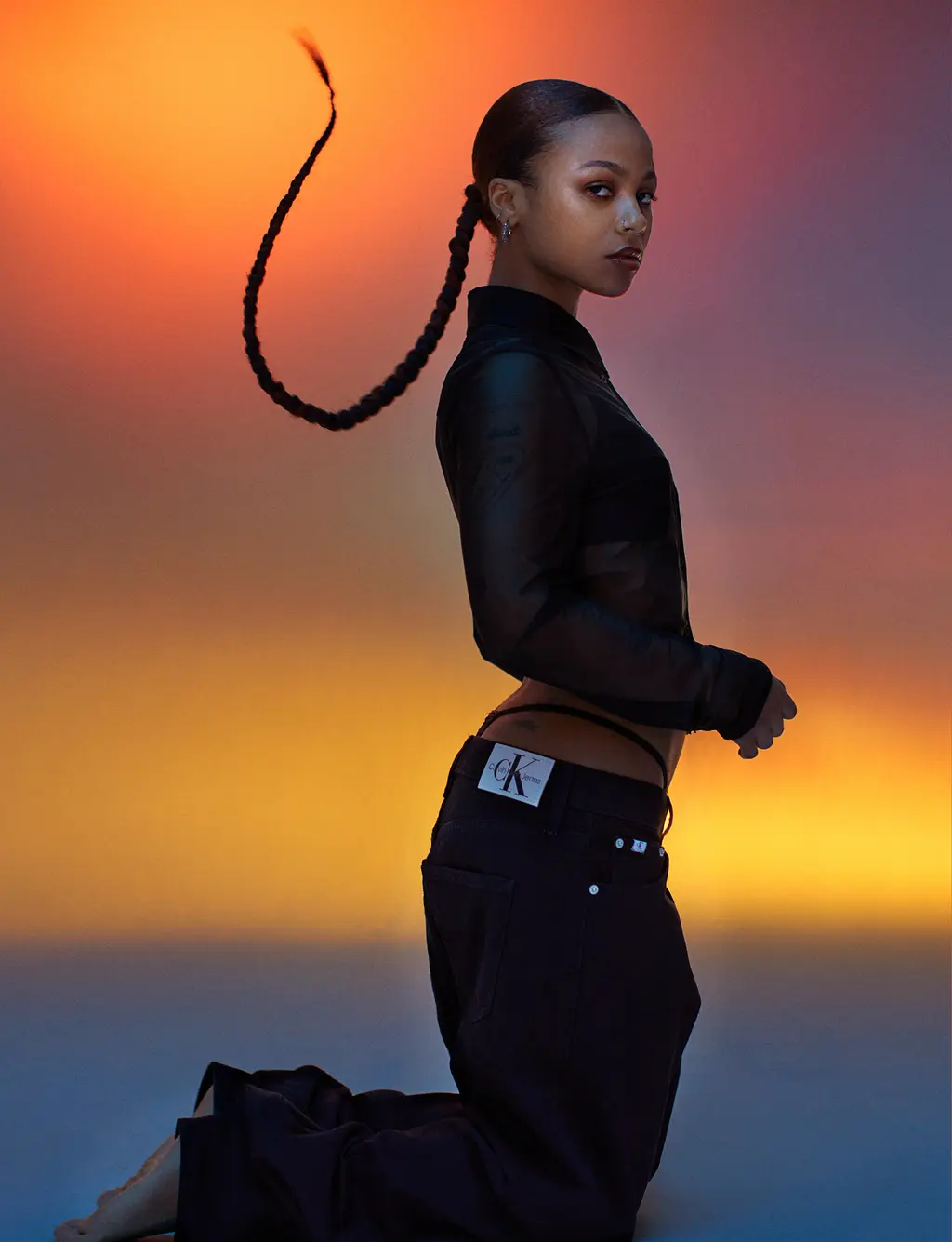 Myha’la wears top and trousers CALVIN KLEIN and underwear stylist’s own