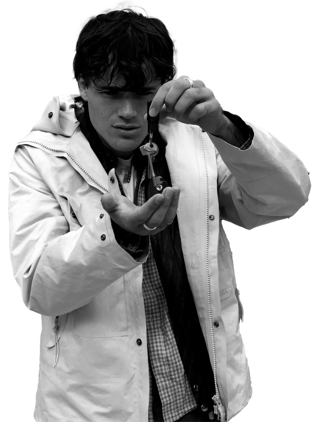Jamie wears jacket C.P. COMPANY and shirts, trousers and shoes talent’s own