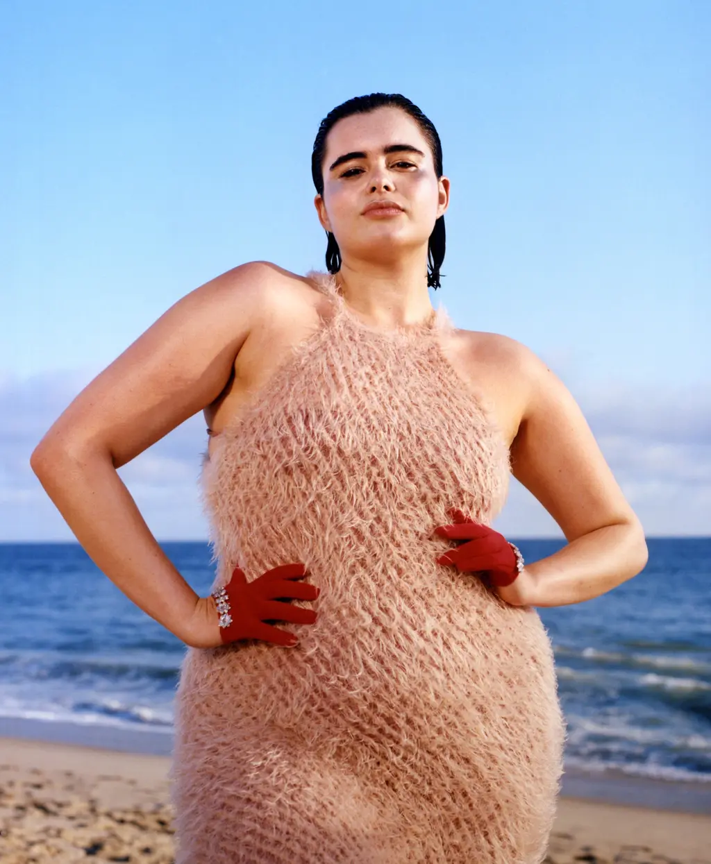 That onscreen confidence mirrors Ferreira’s ability to hold our gaze offscreen, where she often posts photos of her Bodicelli figure to her 560,000 followers on Instagram and racks up compliments like “thick” and “final form.” “I always feel sexy,” she says, self-assured. “But that sexiness took a long time for me to unpack. It’s taken a long time to get over society’s image of what it means to be sexy. And, for me, sexy is someone who – I’m trying to say this without being corny – flaunts their flaws and doesn’t care about what other people think.” By her own definition, and to use a similarly corny phrase, Barbie Ferreira is bringing sexy back.