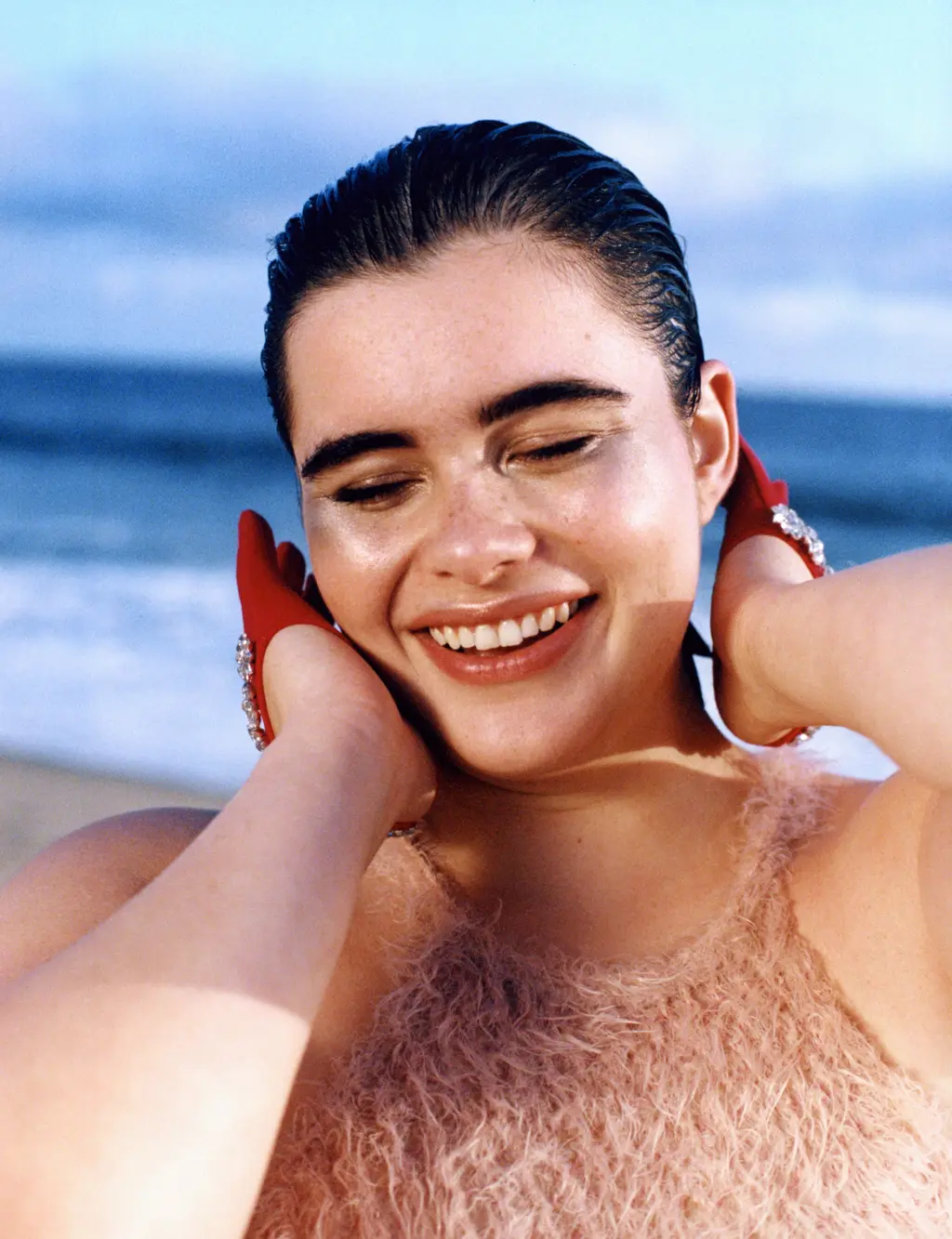 Barbie Ferreira grew up in Queens, New York, for most of her life. She moved to New Jersey for a stint, but since the age of 17 would scrounge quarters for train fare into Manhattan. She is 22, half Brazilian and has lived in LA since September of last year. Ferreira zigzagged from Tumblr sensation to American Apparel billboard model to an appearance in Carly Rae Jepsen’s video for Boy Problems to becoming a megaphone for body positivity, all while stunting on the ‘gram in form-fitting latex and posting videos with her beloved cats, Mortimer (hairless) and Magdalena (hair). Then acting – audition, audition, call back, audition. “It just seemed like I was floating, like I was getting close to it but not enough,” she tells me of all the attempts to break into the Dream Factory. “I was modelling and it was going well. I didn’t know if anyone would ever take me seriously as an actor. I was doubting myself. I was like, ‘Am I the kind of the person that can do this?!’”
