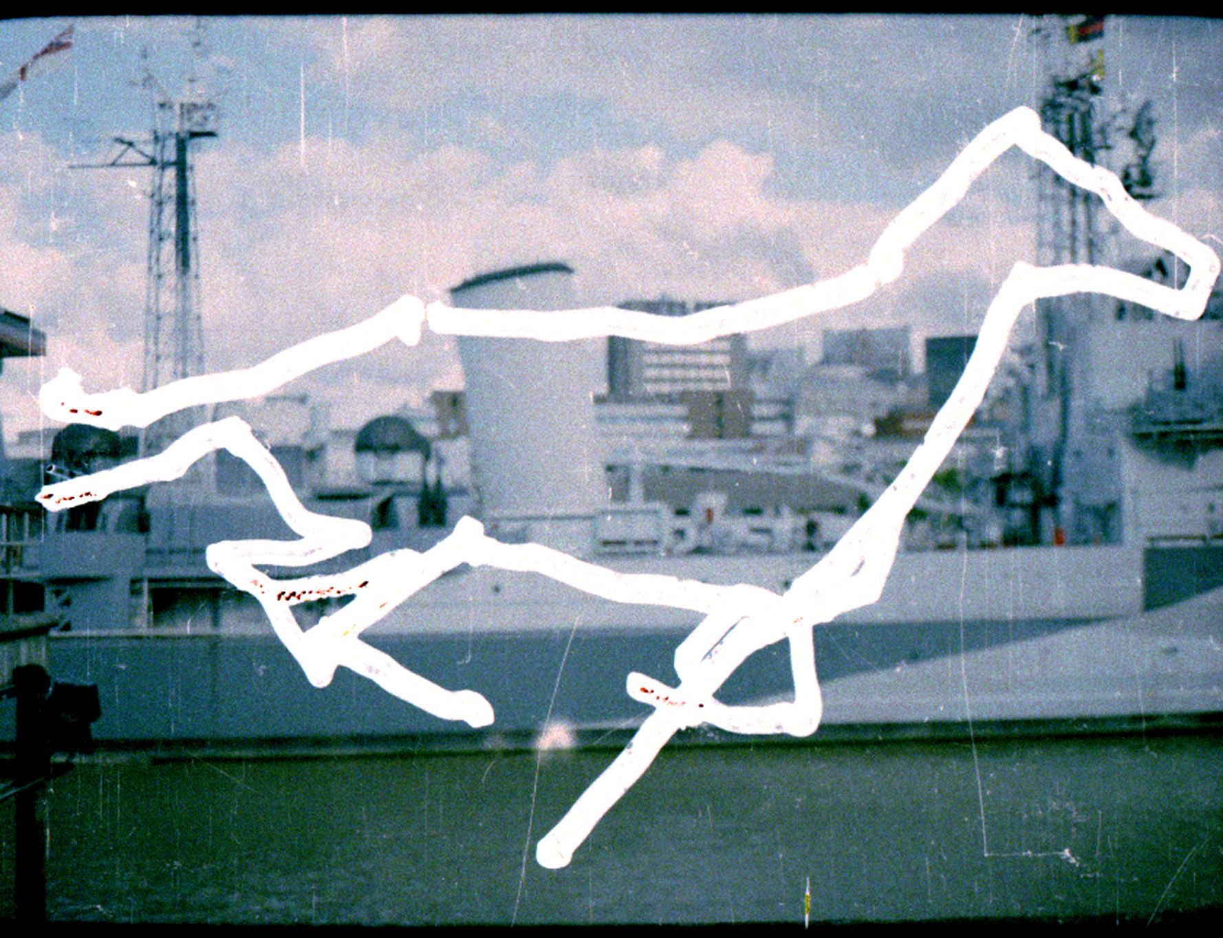 Inside, the show feels both intimate and expansive – a quiet reclamation of an artist whose work has long been overlooked. It span decades, and the team at Graces Mews have gone deep into Kamen’s 35-year archive: abstract paintings sit alongside collages on found text and delicate ink drawings. Larger works on paper are stacked and hung with metal clips exactly as they were found in his studio – a practical solution to a storage problem that emulates Kamen’s set-up. Even the carefully recovered 35mm film at the centre of the show is projected onto unprimed canvases – an unconventional surface that adds a rawness to the presentation while allowing the images to be seen from both sides.
