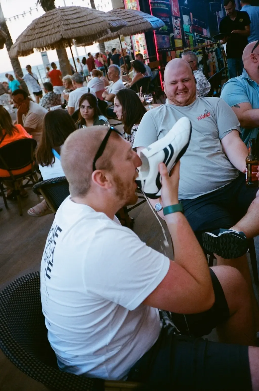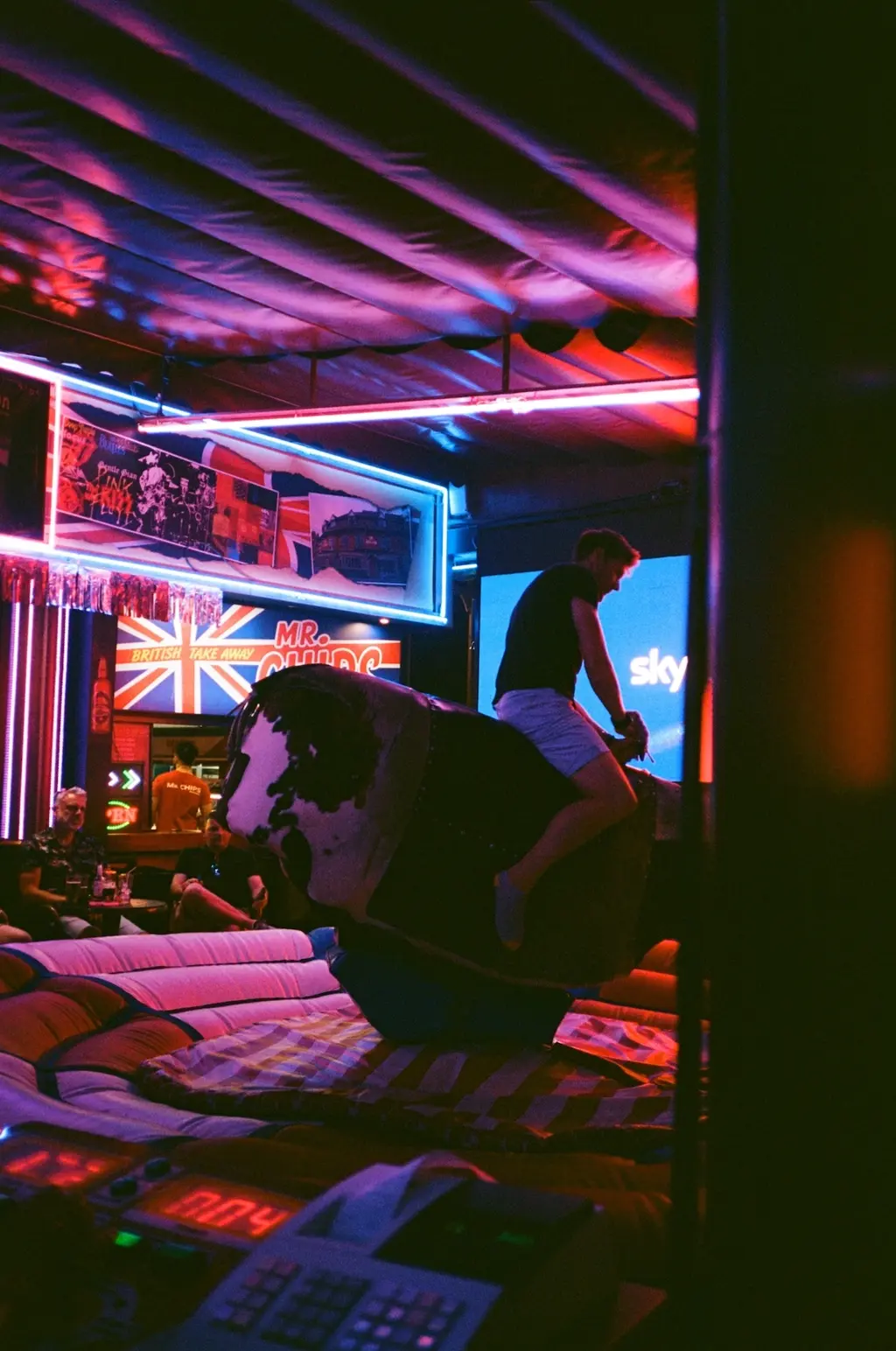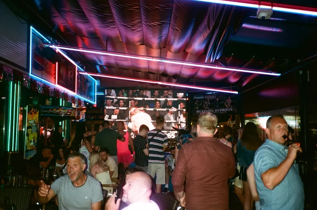 A photograph that best encapsulates the holiday’s heady atmosphere is of a man taking on the “lethal” Bucking Bronco at pub-slash-club The Red Lion, with a HD Sky Sports screen and built-in chippy in the background. Every night, Jackson and the rest of the team saw “numerous injuries” from punters riding it. “One guy broke his ankle and was walking around with it hanging off [his leg] like a snapped twig,” Jackson says. “He told us he had five days left on his trip and no insurance! I think it cost more to ride the bull than buy food.”