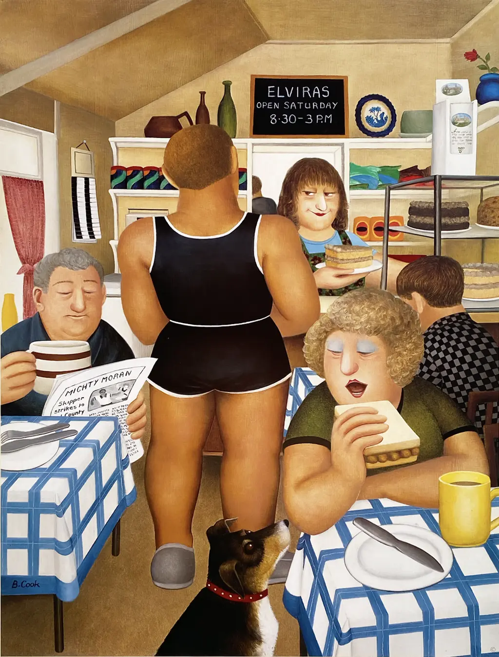 Beryl Cook, Elviras Cafe, 1997, courtesy of the Beryl Cook Estate © John Cook 2023