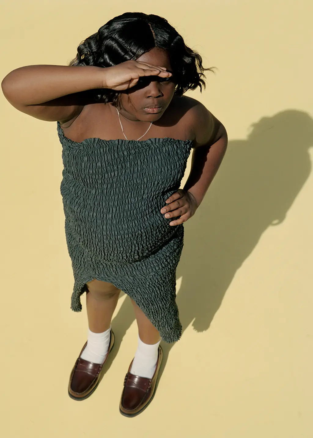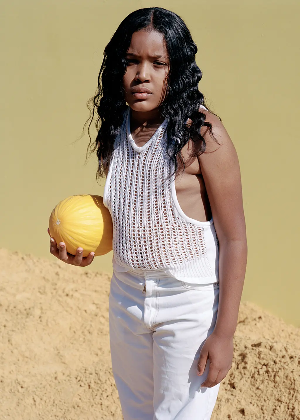 To kick things off Saunders collaborated with McKenzie on a photographic project titled Yellow. Drawing influence from American artist Deana Lawson, whose candid portraiture resonated with the pair, the collection features Saunders’ close family members, including her nine-year-old cousin.