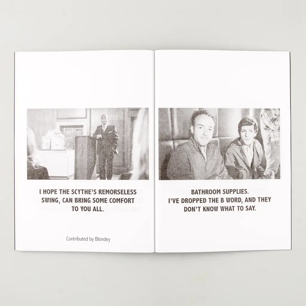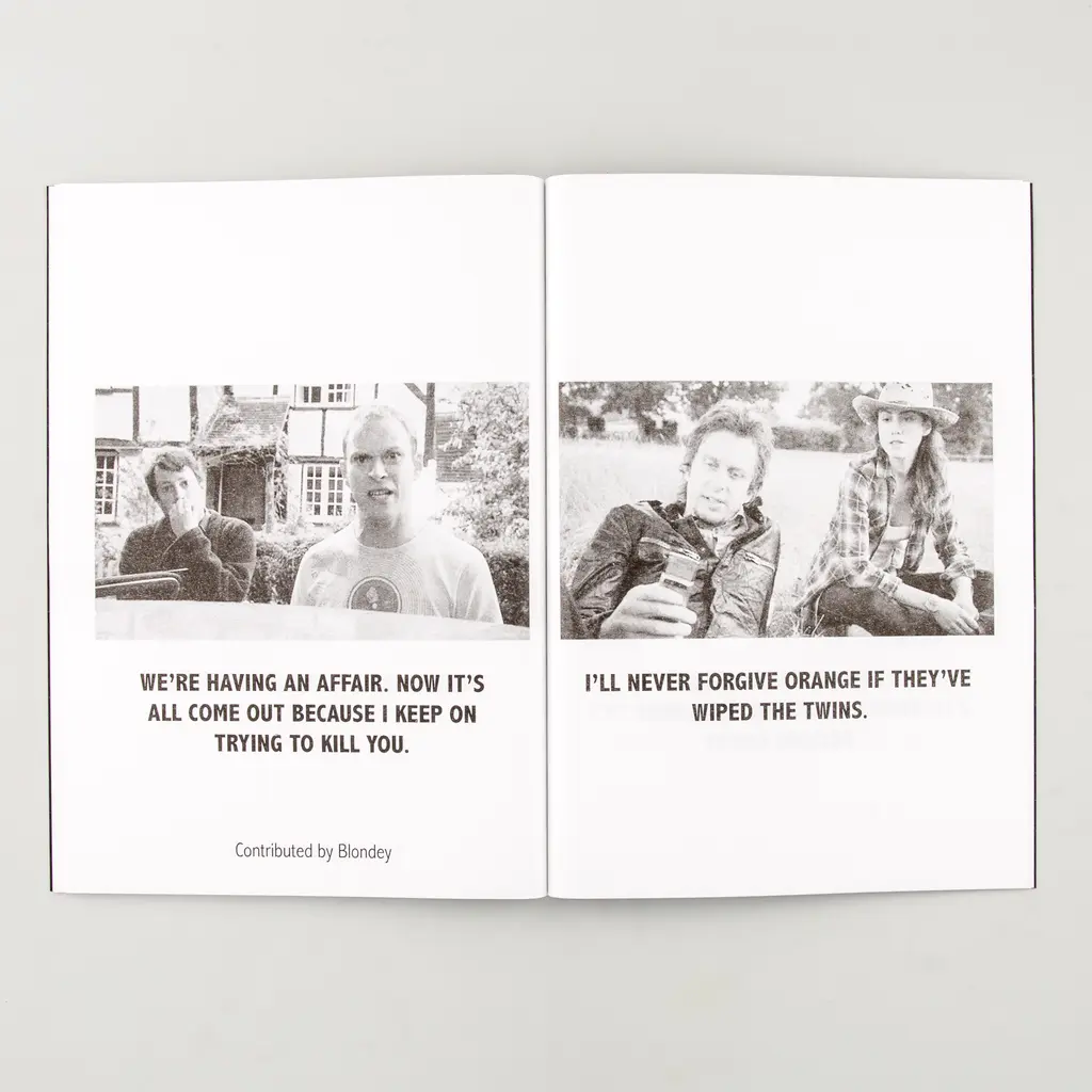 Jackson’s version of Business Secrets of the Pharaohs brings together some of the programme’s most obscure, tragic and hilarious moments, by way of grainy screenshots accompanied by bold quotes. Jackson originally released the zine in November as a bit of an inside joke. It did so well that he’s now putting out a deluxe edition, with contributions from Peep Show fan page Dobby’s Club and skater Blondey.