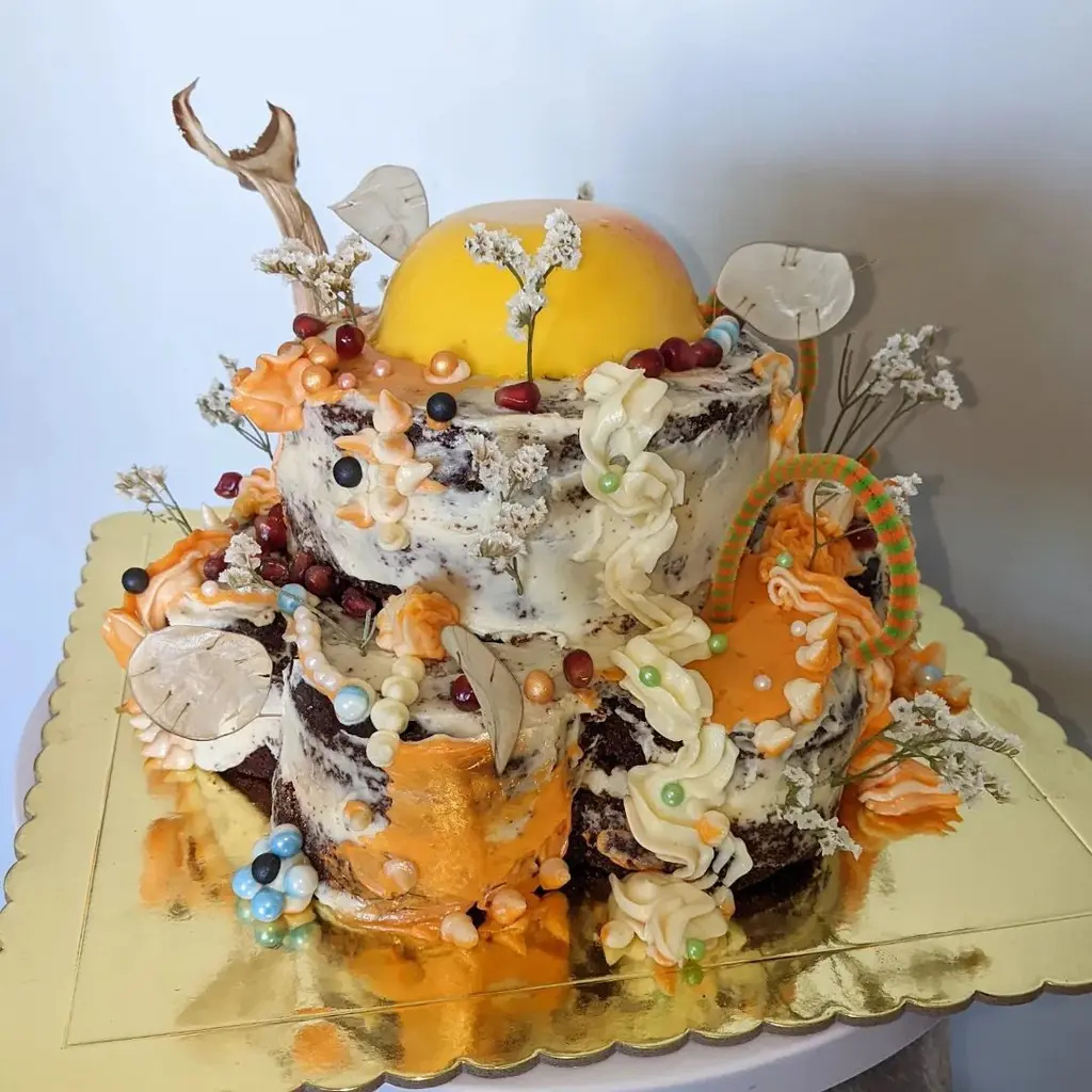 Concrete-coloured icing, slimy seeds as decorations, a muddy, moss-textured base: it seems cakes on Instagram these days are embracing curated chaos. A rejection of traditional smooth white icing, lavish script lettering and delicate piping, baked goods are seemingly entering their ugly phase. Artistic and messy cake accounts like Hoe Cakes, Cakes 4 Sport, Rust Cakes and Cracked Bolos are raking in commissions. But do these more experimental designs mean that we’re finally accepting cakes as art in their own right? Or is it a passing fad riding on the back of our obsession with shitposting?
