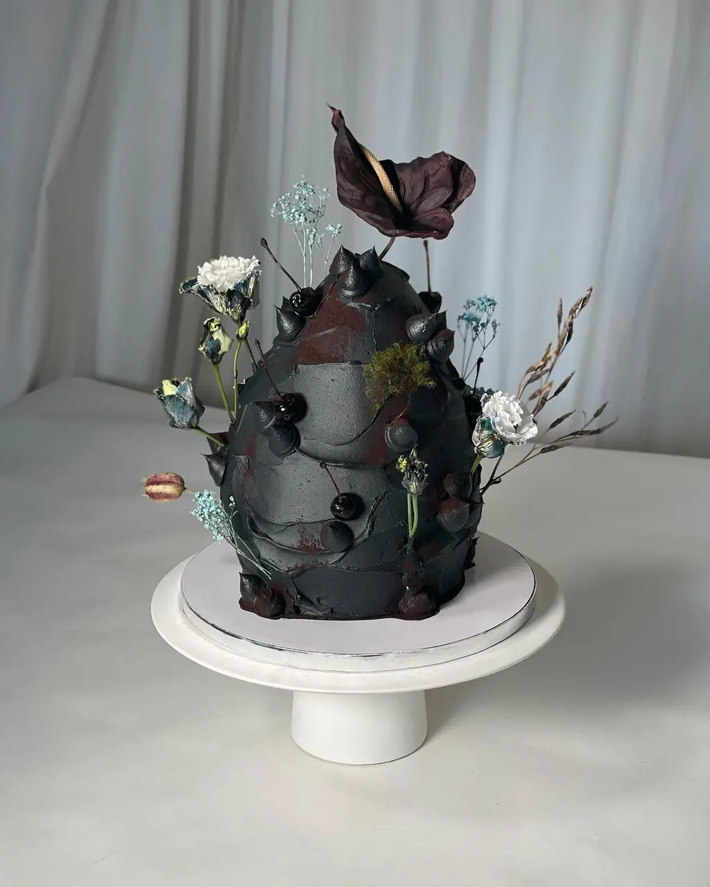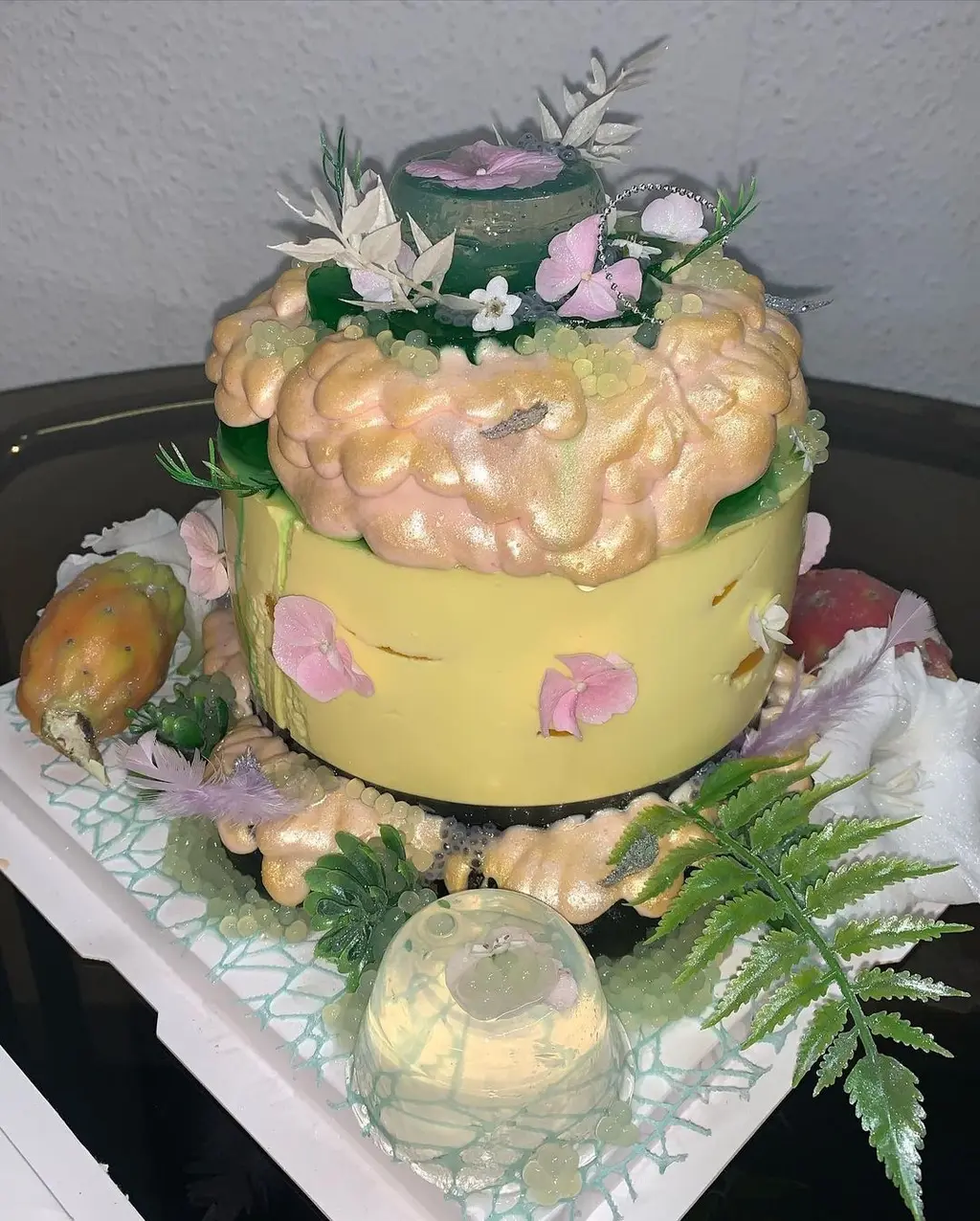 With the anti-influencer aesthetic in full swing – Kim Kardashian is now over-filtering and adding grain to her photos – cake artists seem to be similarly throwing caution to the wind. There are wilting flower cakes, “iridescent but sinister” wedding cakes, black bean-shaped floral cakes, beheaded ET cakes, slimy jelly cakes, lopsided cakes and cakes that look like a kid’s alien-themed science experiment. These businesses are popping up across the world, with popular disorderly cake accounts based in Berlin, New York, Portugal, London and Taipei.