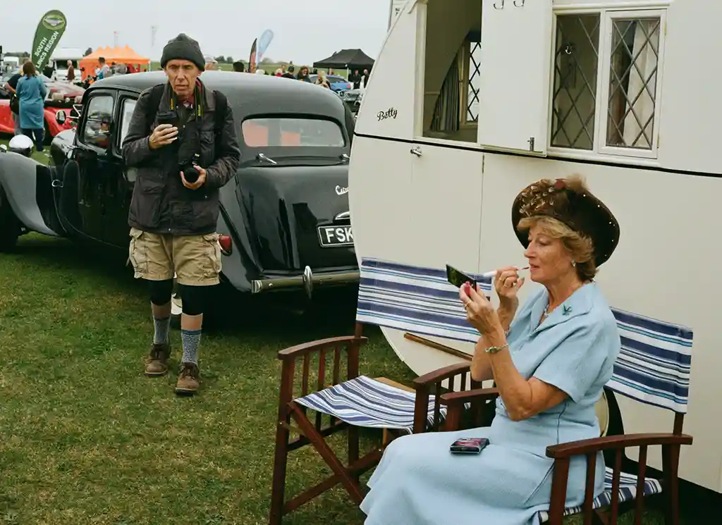 For Marshak, Thruxton was the first in a long line of UK car shows he documented last season, and will continue to attend in the coming months. Capturing the protagonists of England’s racing scene, the photographer presents an exuberant depiction of a niche culture as seen from the perspective of an outsider. From men testing their four-wheeled heirlooms ahead of the race to retro-looking couples lazing around, Marshak’s subjects appear to belong to a distant past.
