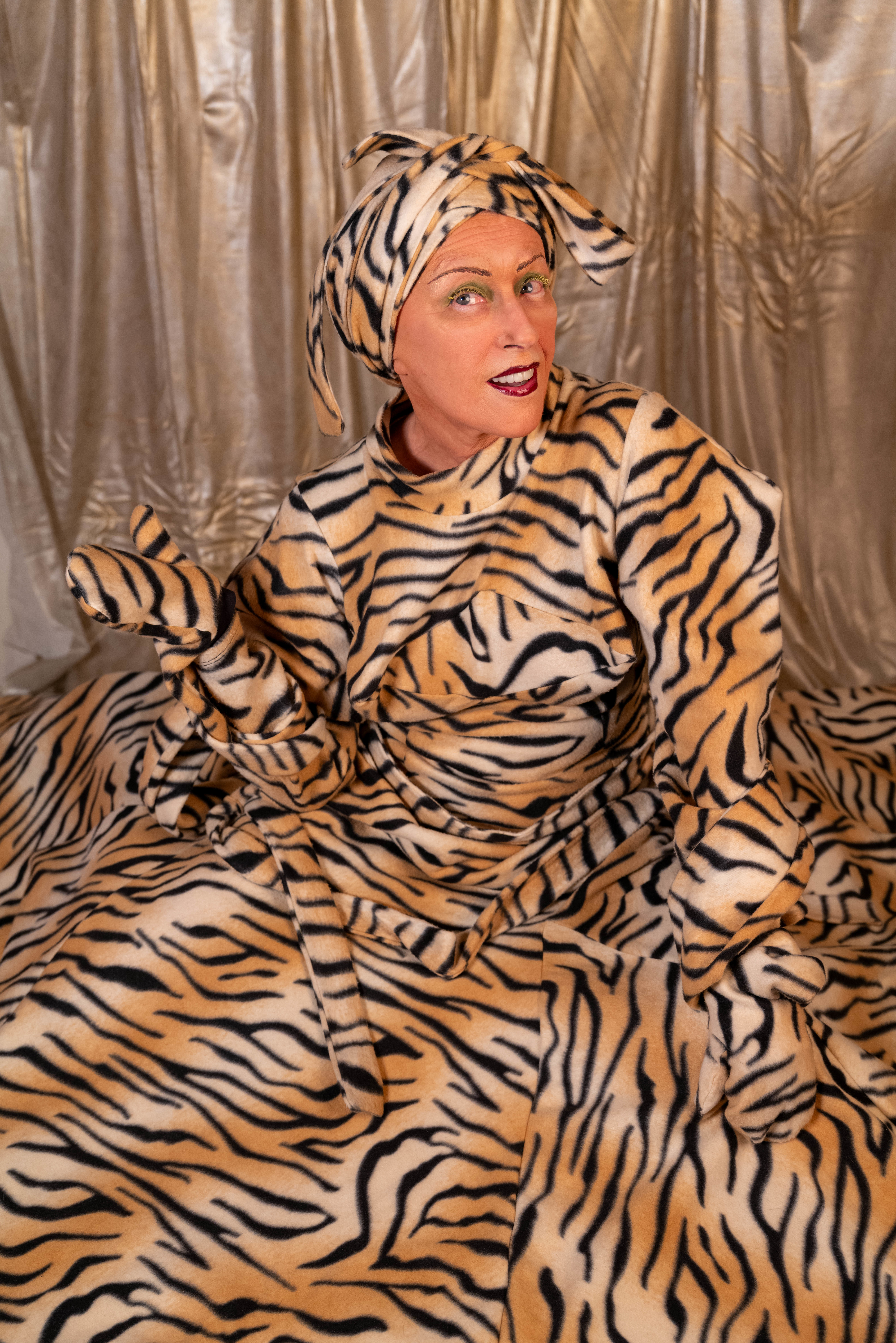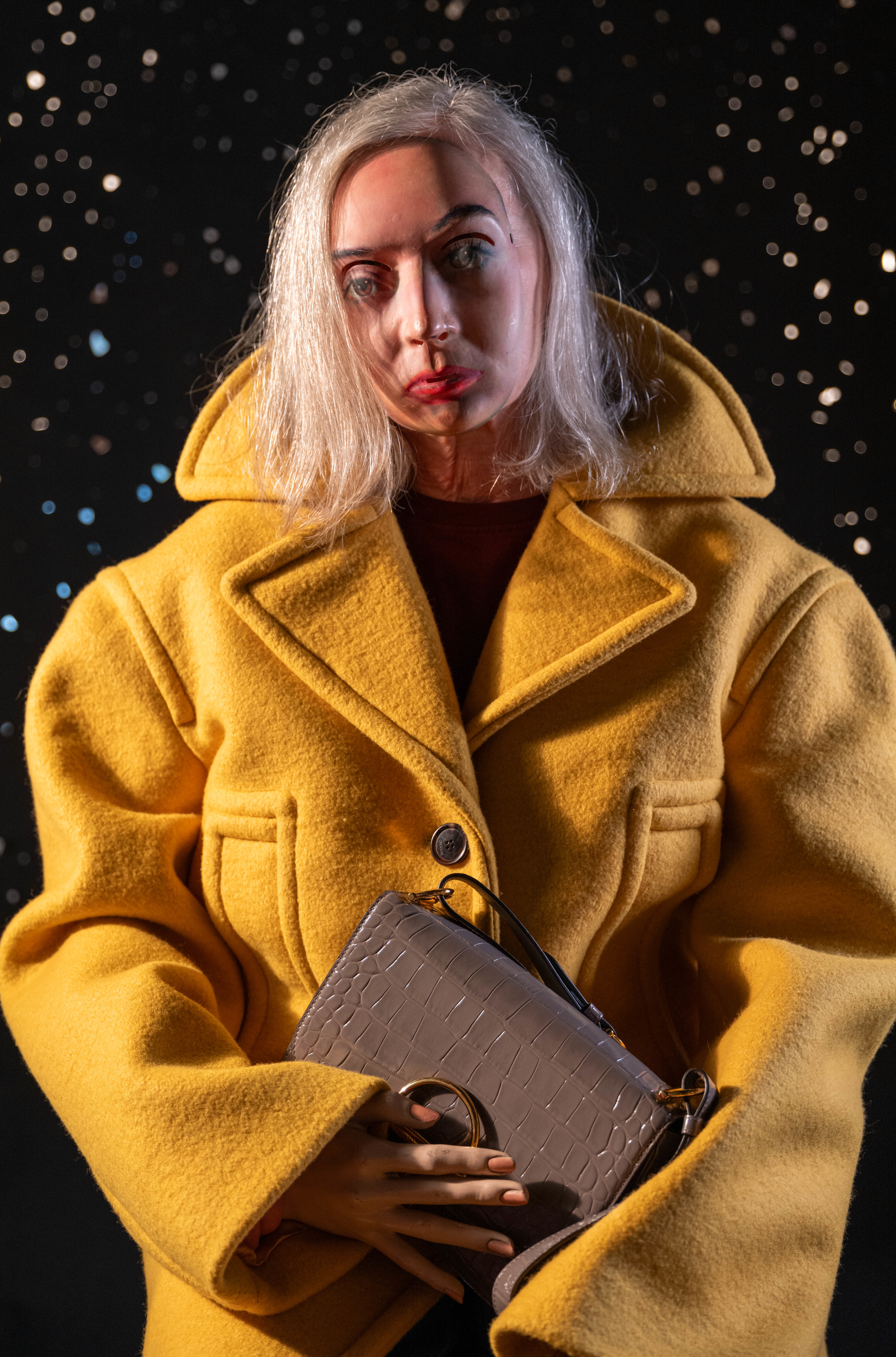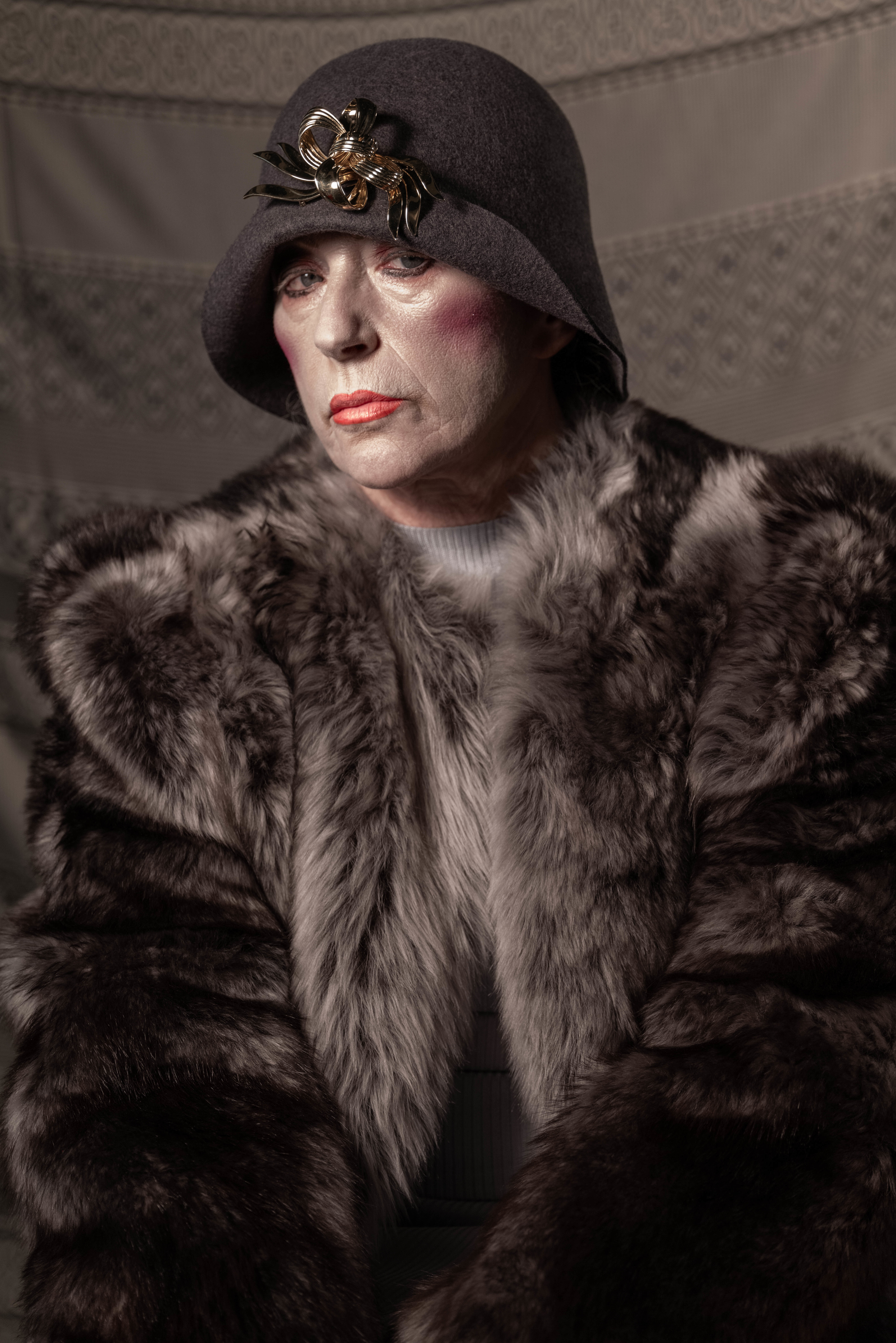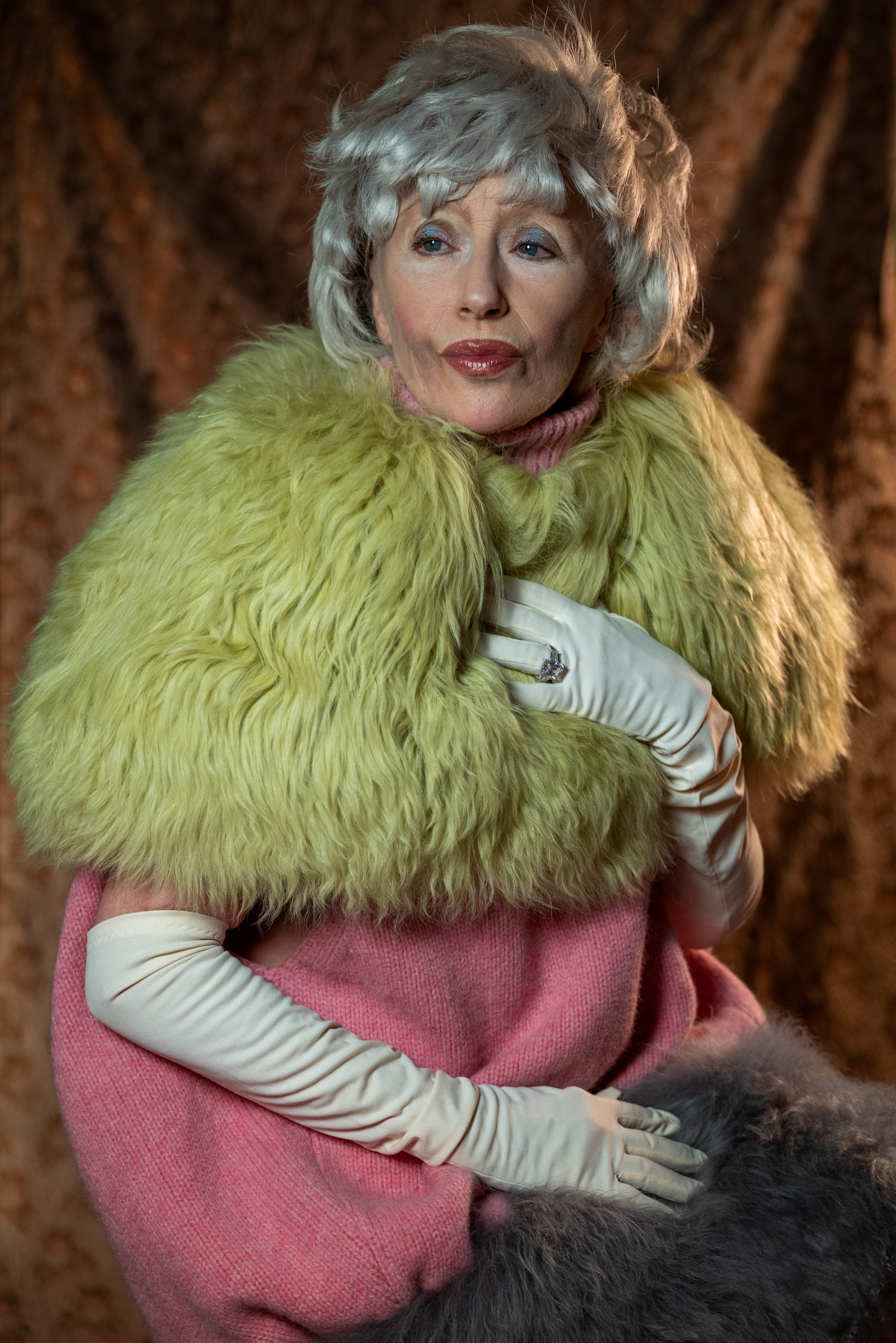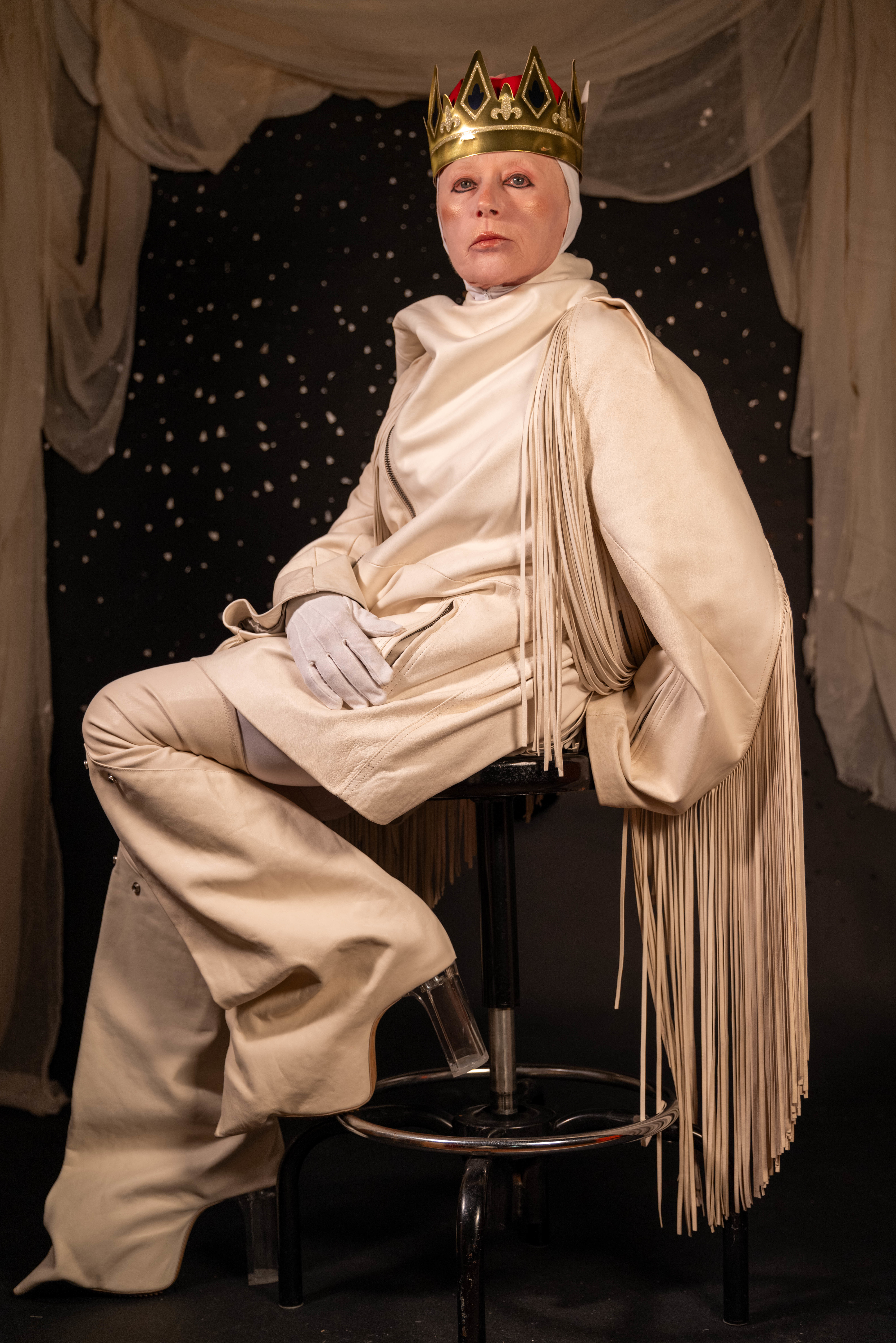 Cindy wears jacket and boots RICK OWENS and crown and glove talent’s own