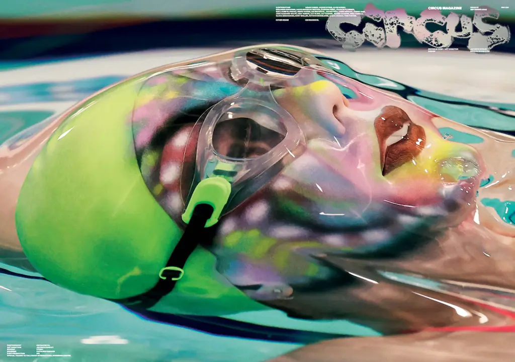Like the technicoloured hair of Circus’ founder-slash-ringmaster, photographer Jackson Bowley, the magazine is totally unpredictable. Each page is more bonkers than the last. On one, a broccoli, pair of scissors and a python are superimposed onto a wooden room (what’s the link, you ask?), while on another, a fairly elongated foreskin pokes out of a jeans zipper. Gracing the cover of its second issue? Olympic gold medalist swimmer Kathleen Dawson, shot by Ian MacNicol.