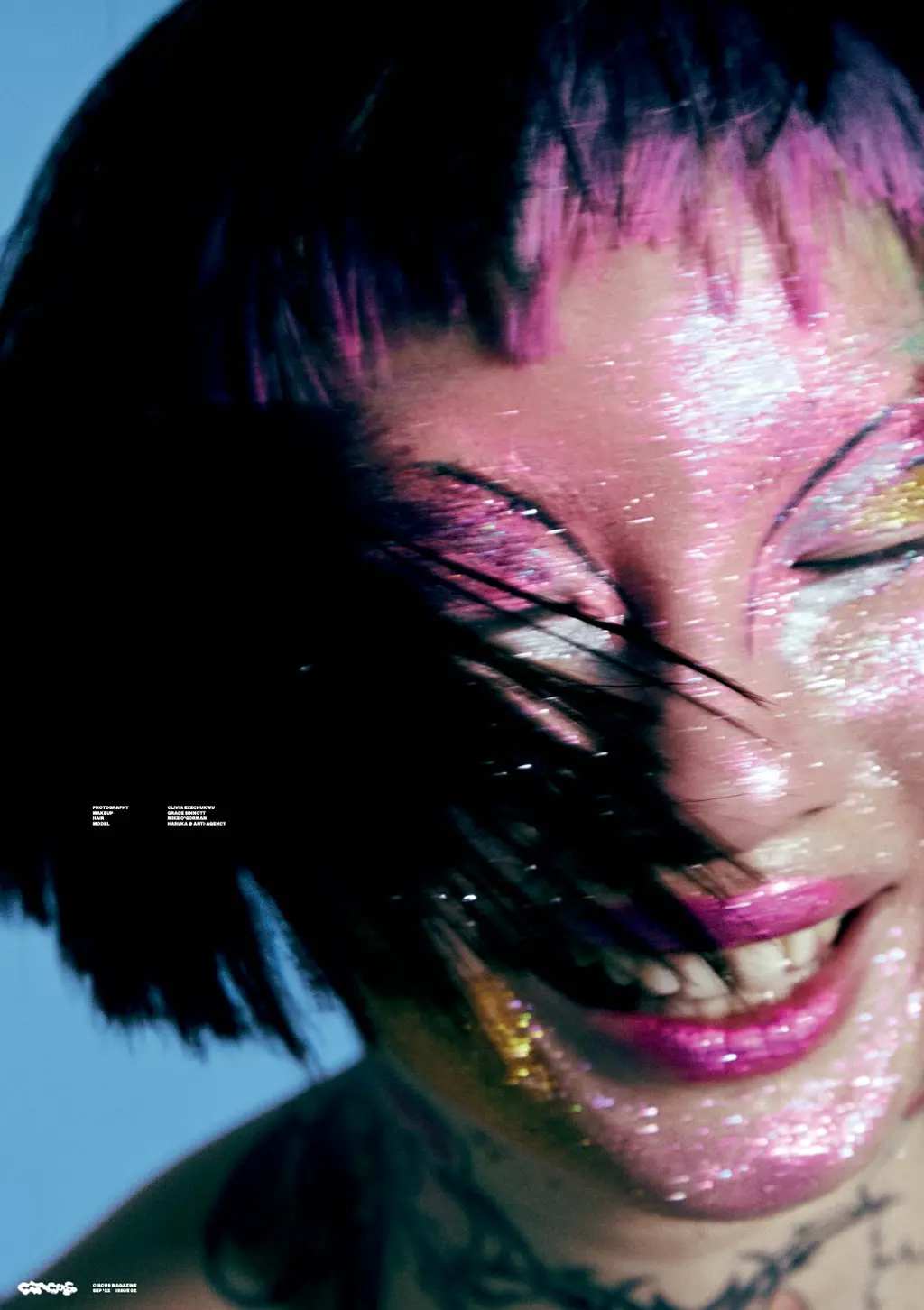 Circus prides itself on its subversive, outrageous take on beauty. Bowley has shot editorials for Dazed Beauty, Tank and, more recently, the backstage faces at KNWLS’ SS23 show, where Isamaya Ffrench provided the slap. Bowley, it would seem, is obsessed with the absurd.