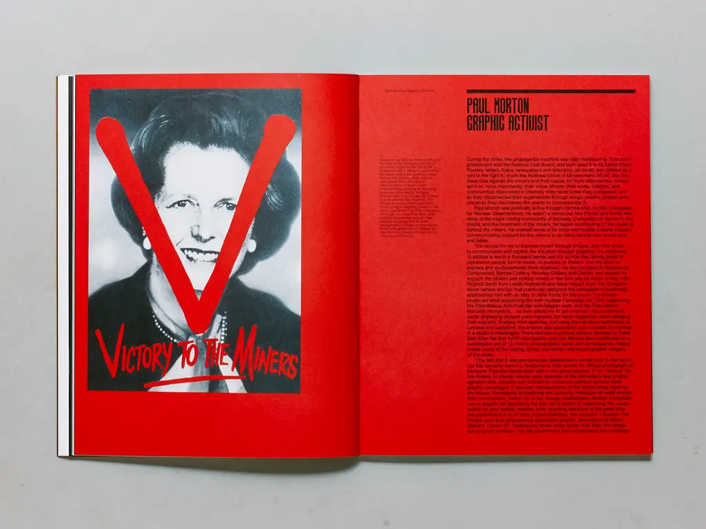 Across 180 pages and featuring a foreword by Ken Loach, In Loving Memory of Work brings together some of the strike’s most distinctive posters and previously unseen photographs taken by striking miner Phil Winnard, while highlighting the simple power of campaign badges such as one that declares “COAL NOT DOLE”, a slogan that was ingeniously engraved onto one pence coins and re-circulated.