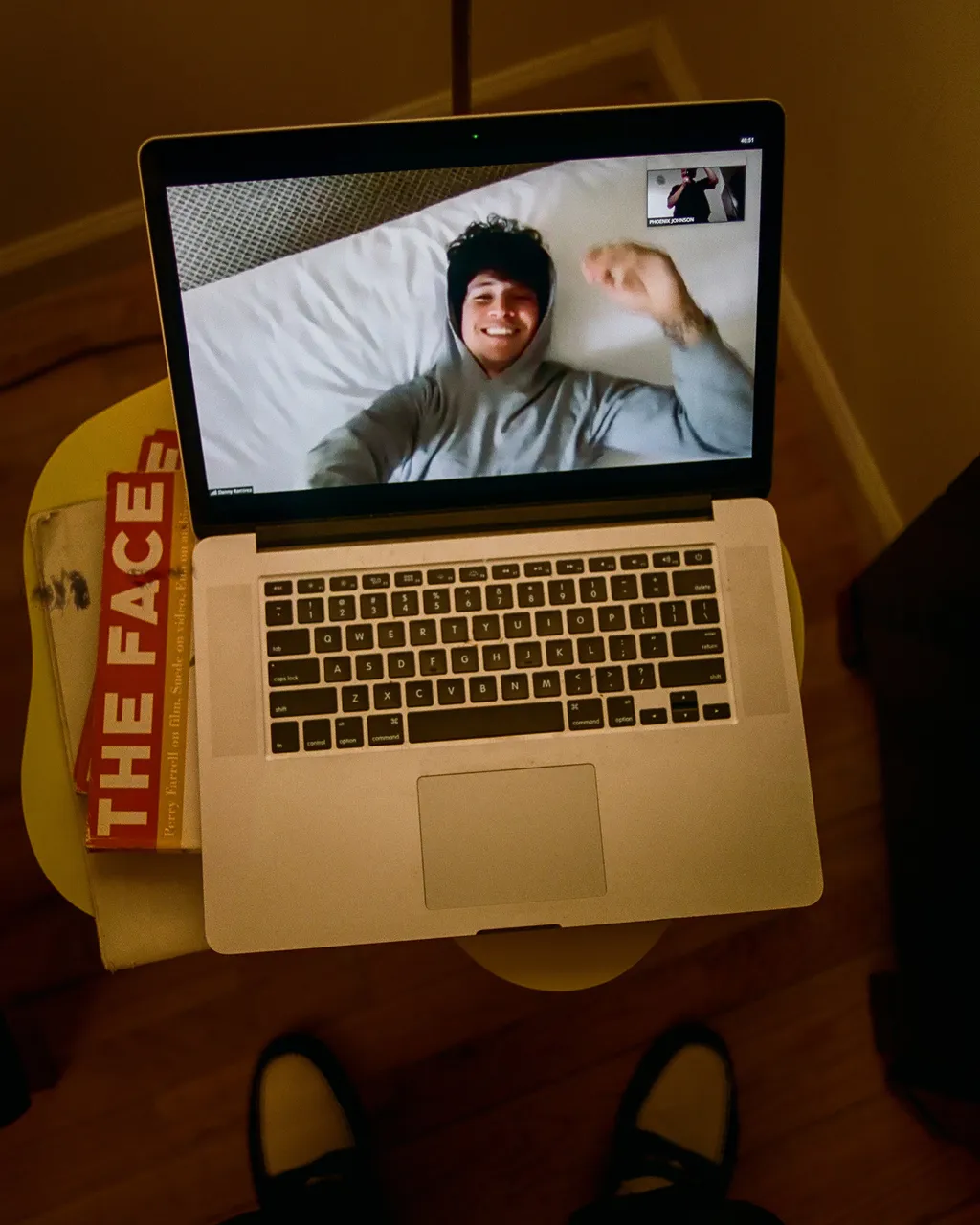 The 28-year-old is in great spirits, dressed in a clean black T‑shirt and a New York Yankees baseball cap gloved over a luscious head of hair. The spring sun is peeking gently through the window, and he reveals that he’s been passing his obligatory quarantine by (wait for it): learning the keyboard, taking photos on a medium format camera, practicing French through Duolingo, reading books on acting, completing a script, playing soccer, and becoming closer to himself through meditation. Which is all fascinating enough until you learn that this is just the quiet before the storm.
