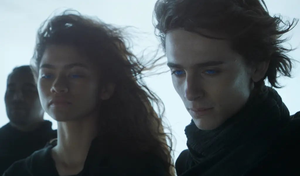 Arriving on Arrakis with his father Leto Atreides (Oscar Isaac) and mother Lady Jessica (Rebecca Ferguson), young Paul is plagued by dreams in which sees Fremen, the native inhabitants of the planet. One of them in particular stands out in his visions. No wonder: she’s played by the sacred Zendaya.