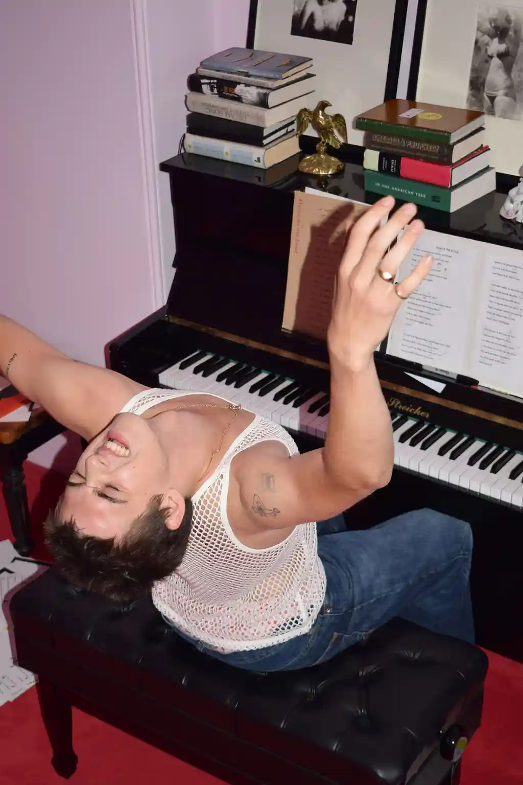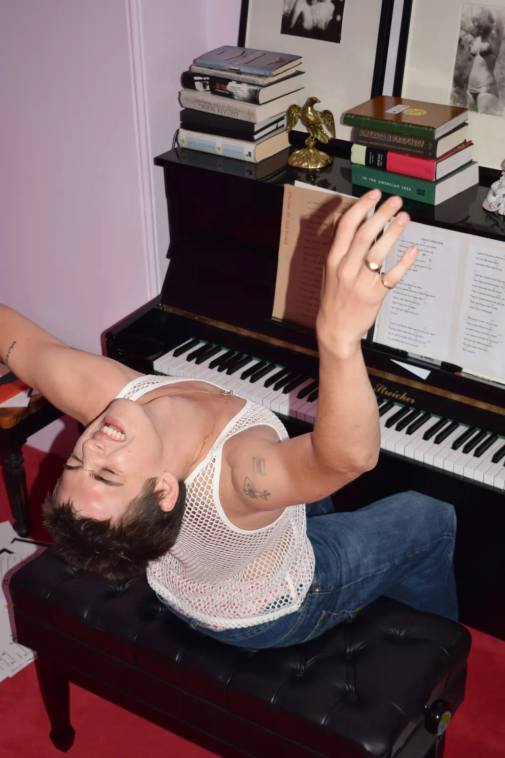 “I never really know what to write about,” the 20-year-old says. “I just take a random thing that I see in front of me or in a book, where I flip to a random page. I had this little book on birds. There’s this one page that talked about a kestral and hobby and then these two birds that are a falcon of sorts. They live in entirely different climates. I wrote a little story about those two birds.”