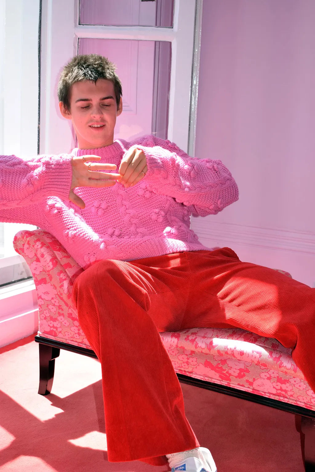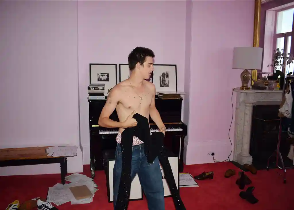 Earl Cave sprints up the stairs in his parents’ all-pink Brighton seaside home to fetch his journal. This is where the actor is spending what he calls, simply, “iso”, with his father, vampy rock’n’roll icon Nick Cave, and his mother, Susie Bick. He wants to share a passage he’s written. On the way, he describes his surroundings. Cave tells me about a father and son who play cricket every day on the lawn in front of the house. (“They’re getting really good since they first started,” he says, breathlessly.) Finally, he has located his journal.
