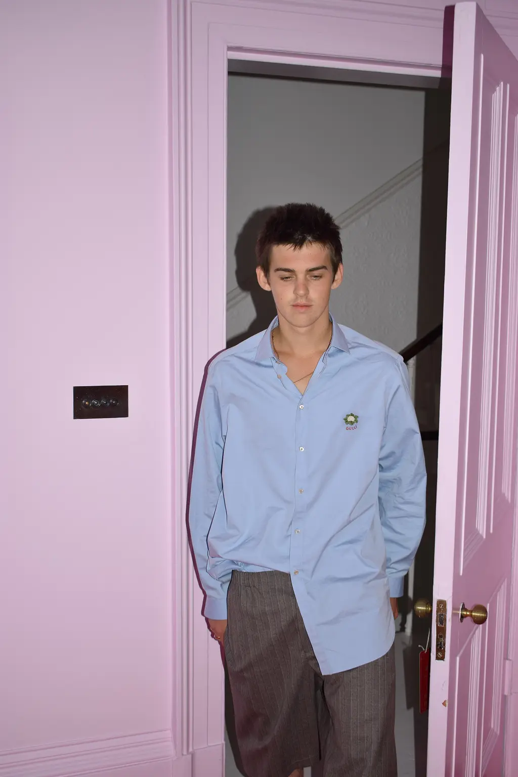 Earl wears shirt and trousers by Gucci