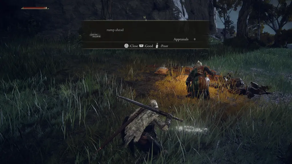 Elsewhere, tactical tips like “time for thrust attack” do not necessarily refer to swordplay. Interestingly (or, you might say, disappointingly), From has removed some of these phrases from Elden Ring, cleaning up the game’s act a little, even as it has stirred in obvious red flags like “rump”. It’s an open question how much the developer is deliberately provoking these responses, building up a bit of sexual tension with its playerbase, even as it weaves grimly unromantic stories about corrupted gods and undead curses.