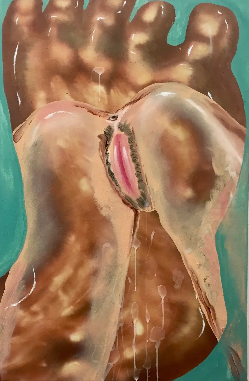 “I focus on feelings of guilt, disgust, shame, excitement and euphoria,” says the 20-year-old. “I’m interested in grotesque imagery and alternate female and male representations of power.” Recently, her work has subverted moral ideals. She illustrates bodily fluids; sweat, spunk, piss and blood, to form a new-found acceptance to things that, well, most people find repulsive. Like the artist herself, who admits to finding bodily fluids uncomfortable. “I think bodily fluids connect us to what it is to be human,” she says. “They are so ignored as they usually signify something wrong, but everyone experiences them.”