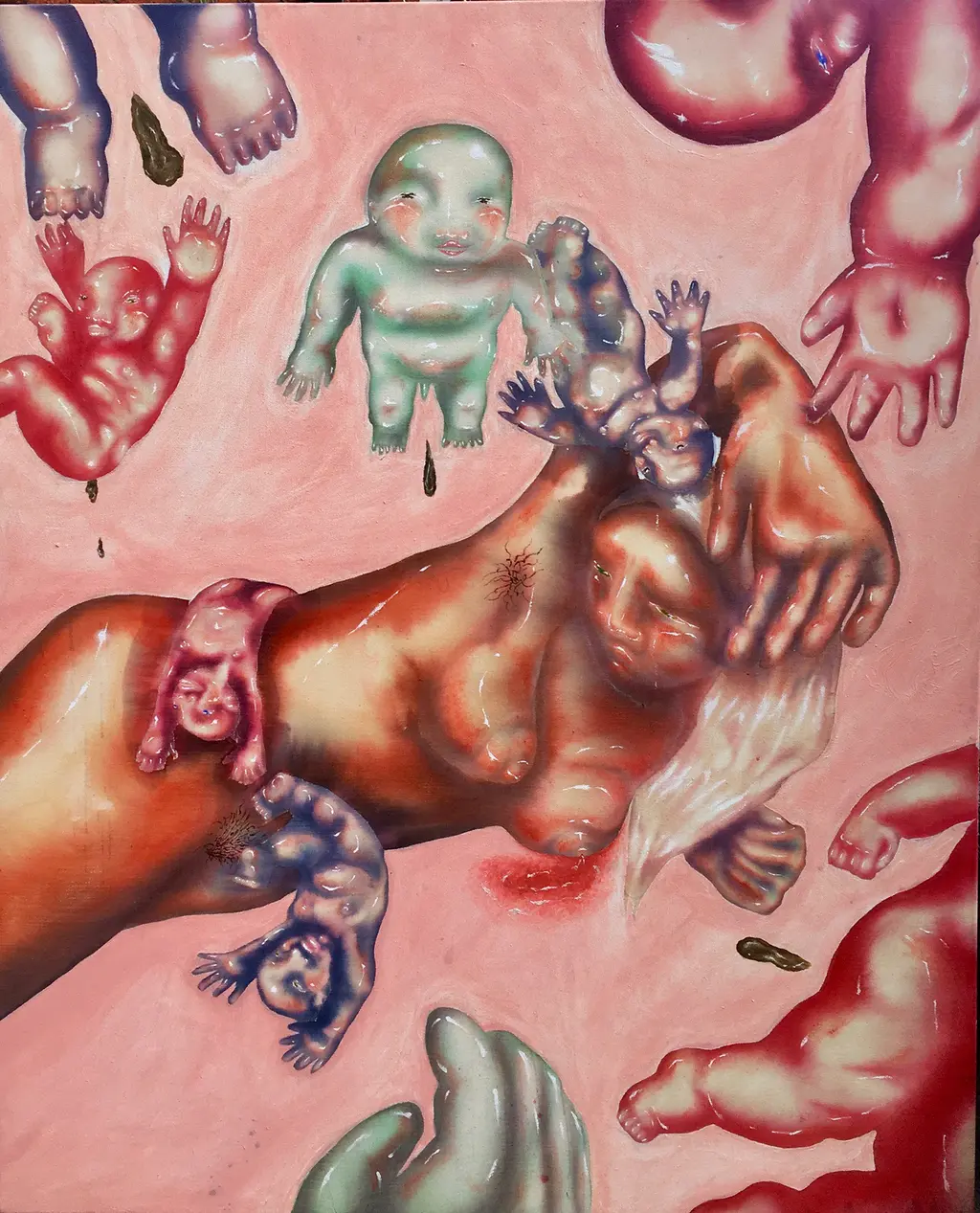 At 20-years-old, the artist is carving a reputation for her subversive take on sexuality, painting nightmarish scenes of dark fantasies, bodily fluids and the female gaze through a liberating lens.