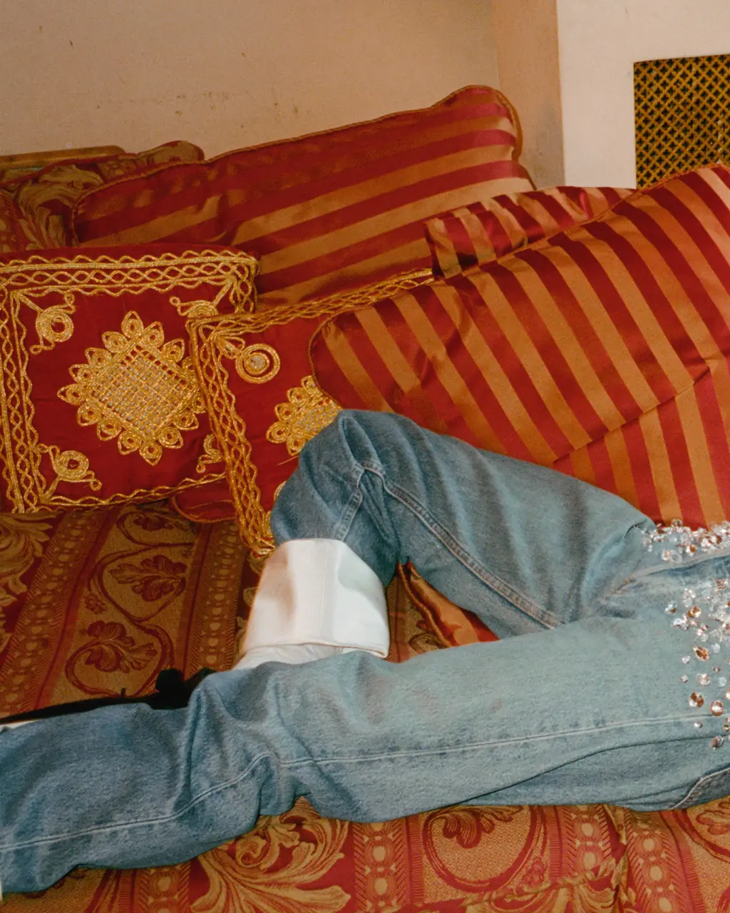 Emily wears jeans LEVI'S X MIU MIU AVAILABLE AT SELFRIDGES