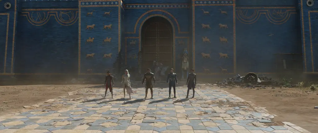 Zoom, eh? Going by the verdant backdrop shimmering behind them during our interview, two members of the sprawling cast and crew of Eternals are beaming in from ancient Mesopotamia, the hanging gardens of Babylon, the Amazon basin in the time of Aztecs or the Australian outback in the time of Neighbours – just some of the millennia-spanning eras and places featured in the latest maximalist Marvel movie.