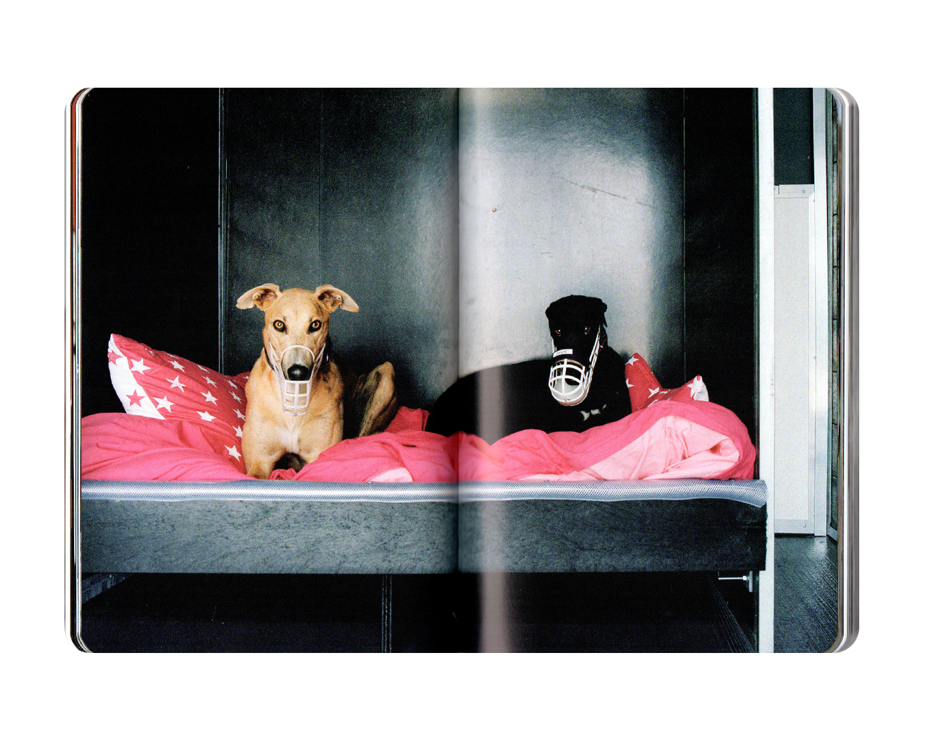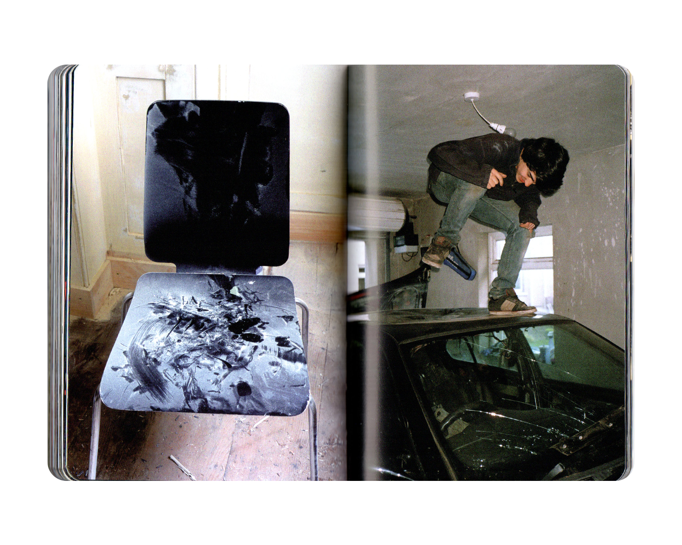 The book’s pages feature no titles, dates or credits. Those are consigned to the index at the back, although still without explanatory captions. Instead, Fantasy Island purposefully evokes a sense of an infinite now through a contextless stream of photos. They leave the viewer with more questions than answers. When was this image taken? Why are those dogs muzzled? Why is this man at what looks like a house party wearing a balaclava? How long has that burnt car been sitting there? And why are these images of a dead fox and ’70s punks next to each other?