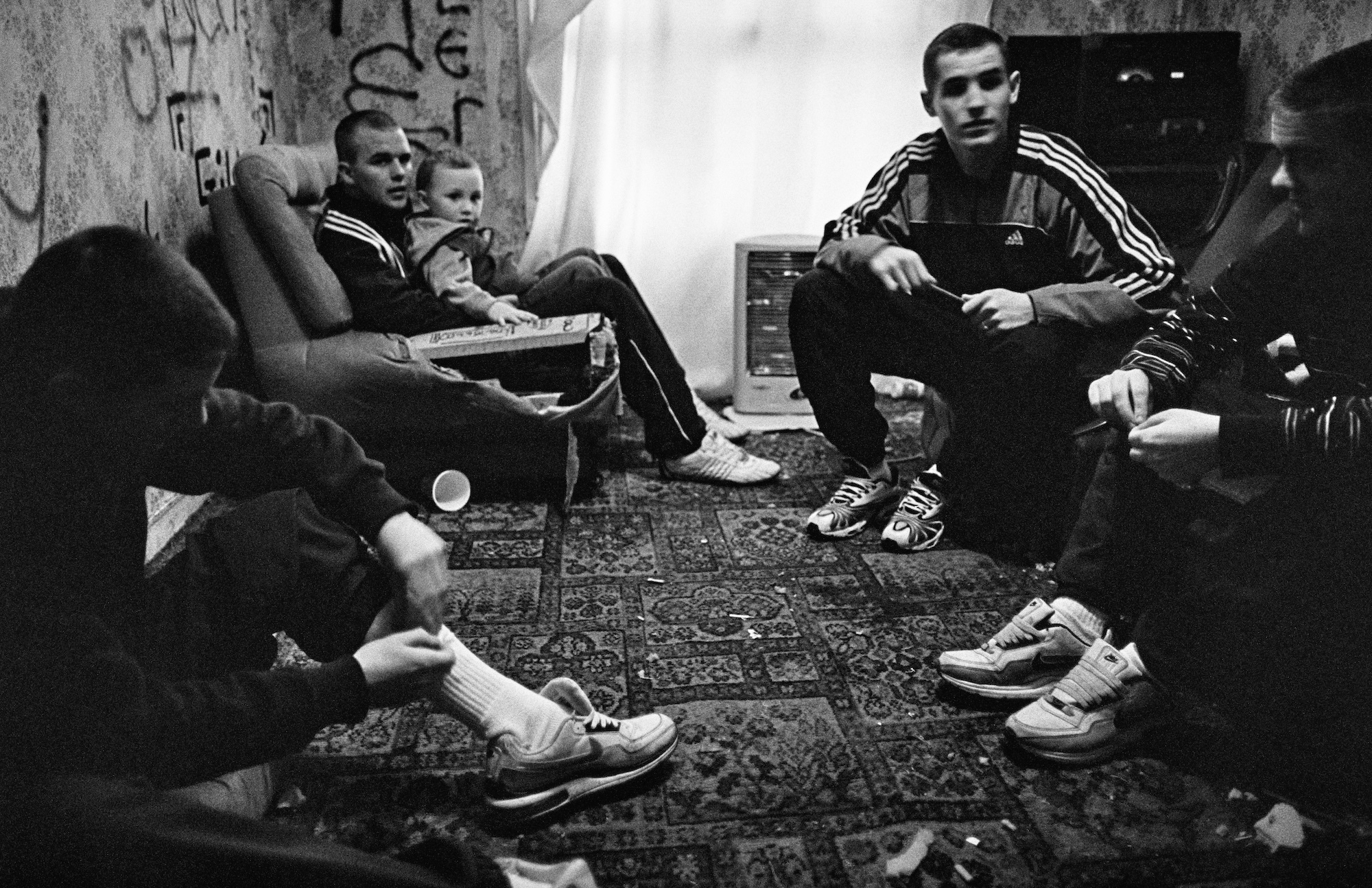 L: As we started editing the book, certain patterns began to stand out. Some visual motifs kept showing up: police, dogs, murals, bonfires, tracksuits, burnt-out cars. We hadn’t fully realised just how many shared themes there were until we saw all the images side-by-side.
