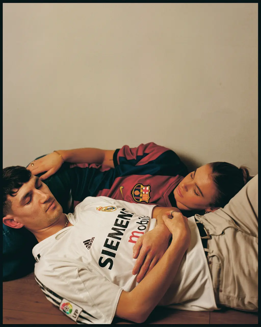 The project, titled Flat 92 after his home-cum-studio, has seen all sorts of faces take the hot seat. Couples sharing an intimate snog, blowing on a trumpet, a bloke in a Barcelona FC viking hat, all proudly wearing classic shirts such as Arsenal’s 1991 away shirt, Man Utd’s 1996 home shirt and Paul Gascoigne’s England home shirt, also from ’96.