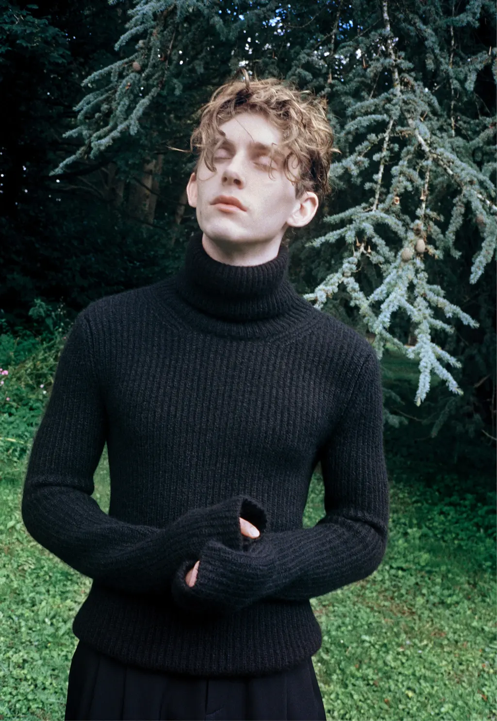Fionn wears jumper SAINT LAURENT BY ANTHONY VACCARELLO