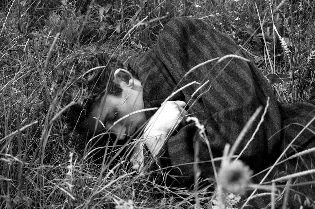 How did Fionn adjust to embodying such a towering figure in Irish culture? “It was really terrifying,” he admits. The actor fishes in his phone for images from the shoot, on which his unruly hair was straightened, glasses were affixed and a heavy woollen suit was draped around his lean frame. “This is towards the end of my portrayal, during his time with the French Resistance,” he says, proffering an image of himself, in an incredible likeness of the bookish Beckett, filming scenes set during WWII, one of many remarkable interludes in the writer’s life.
