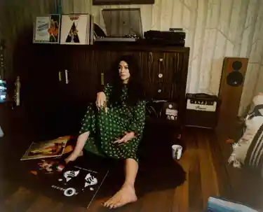 We meet at their mid-century home in the Hollywood Hills, close to Mulholland Drive, an opium den of inspiration drenched in beautiful natural light. The home is filled with art, books, vinyl, and an array of beautiful crystals, which Sigismondi calls “my friends”. Her favourite is a large lapis lazuli which matches the stone inset on the Eye of Horus pendant around her neck, an ancient Egyptian symbol of royal power.