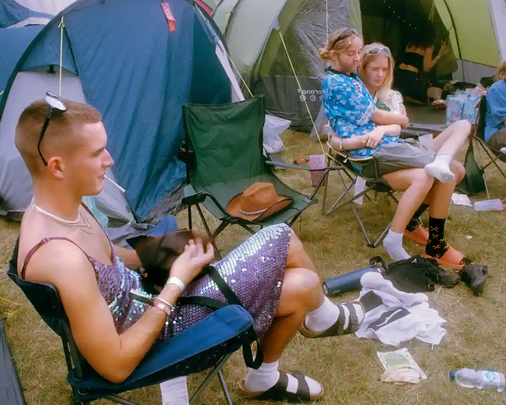 During the pandemic, photographer Joe Puxley felt the festival blues – hard. More than the live music, it was the atmosphere and the campsite camaraderie he missed most. Mornings spent mixing warm drinks into plastic bottles; late nights stumbling back to the tent arm-in-arm; losing all your mates and falling in love with a stranger.