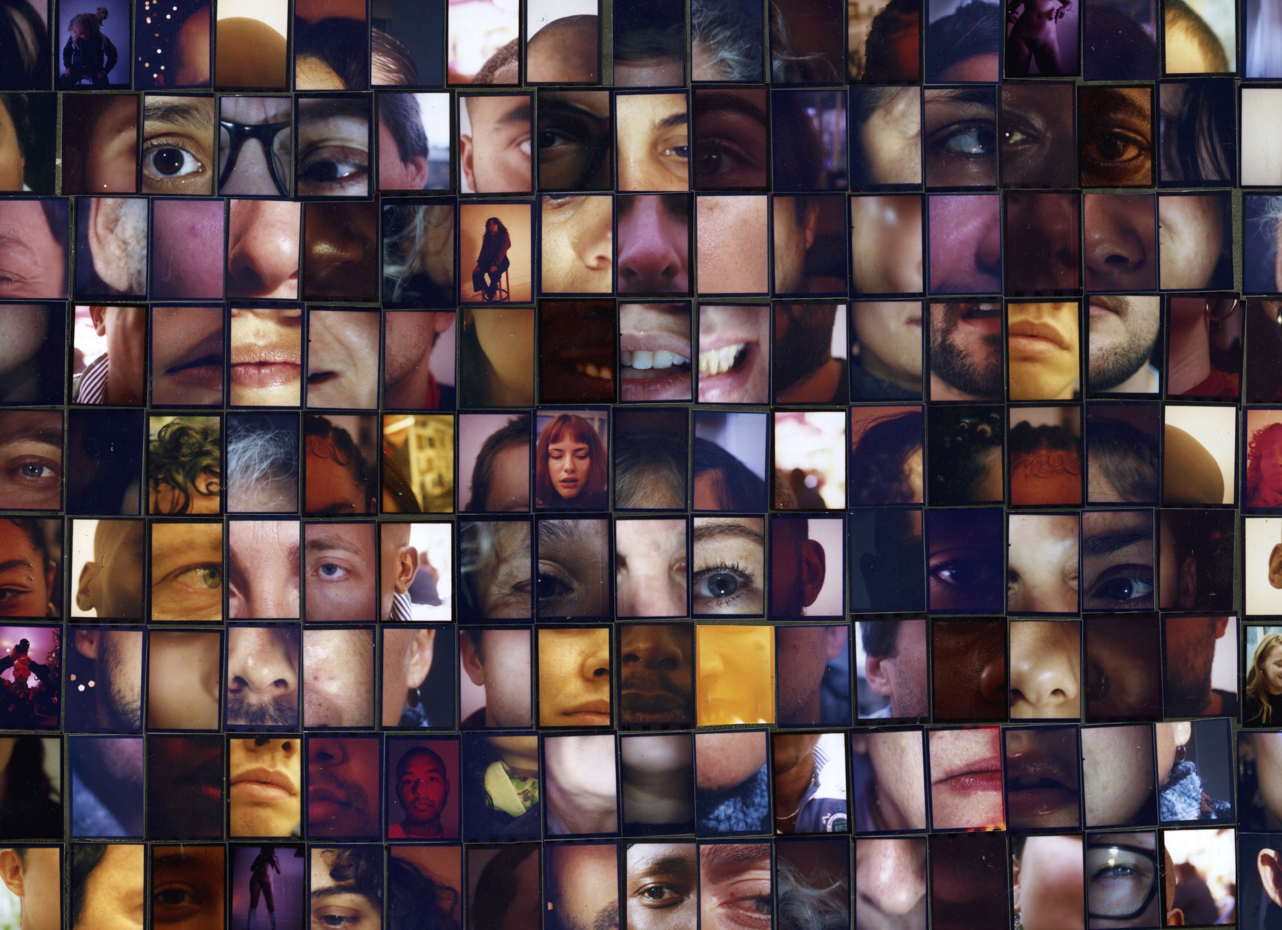 It turns out Frank asked his friends and family to prick their fingers and collect small samples of blood for the occasion, which he then smeared onto glass slides that he then paired up with their portraits. Occasionally, he’d ask each person to place their bloodied finger over his flash before snapping their picture – hence the warm terracotta hues that anchor much of One Blood.