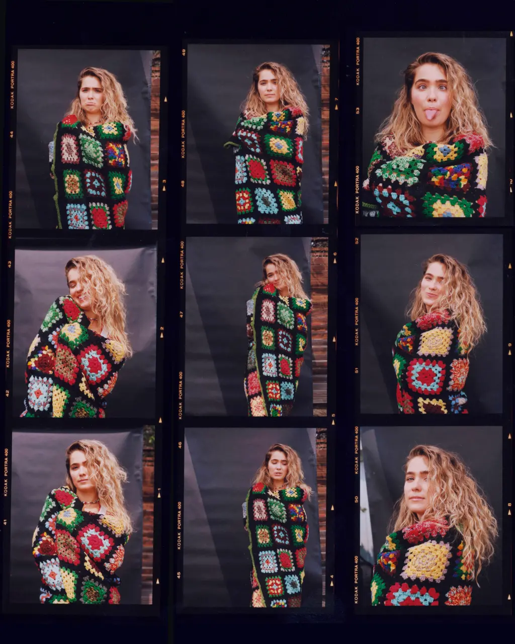 Haley wears tank top Hanes, necklace Karo Karu, costume blanket Palace Costume.