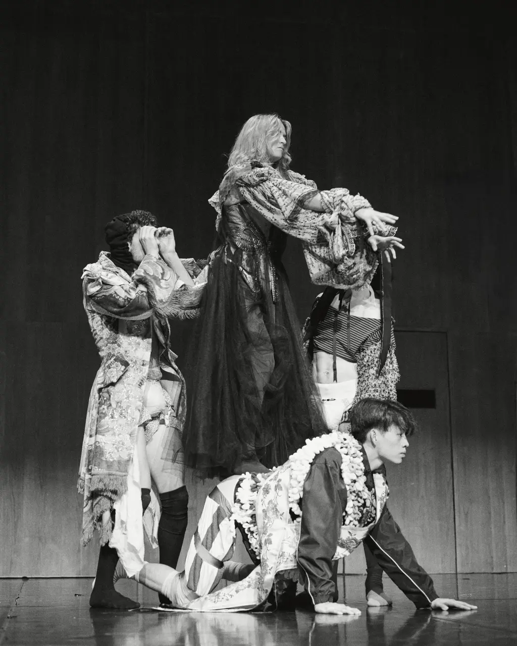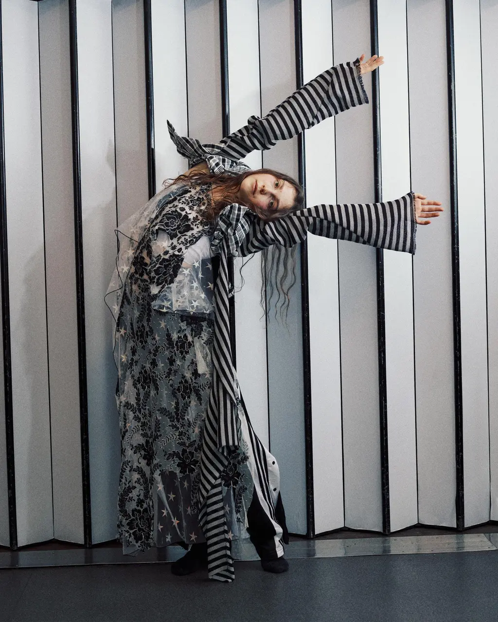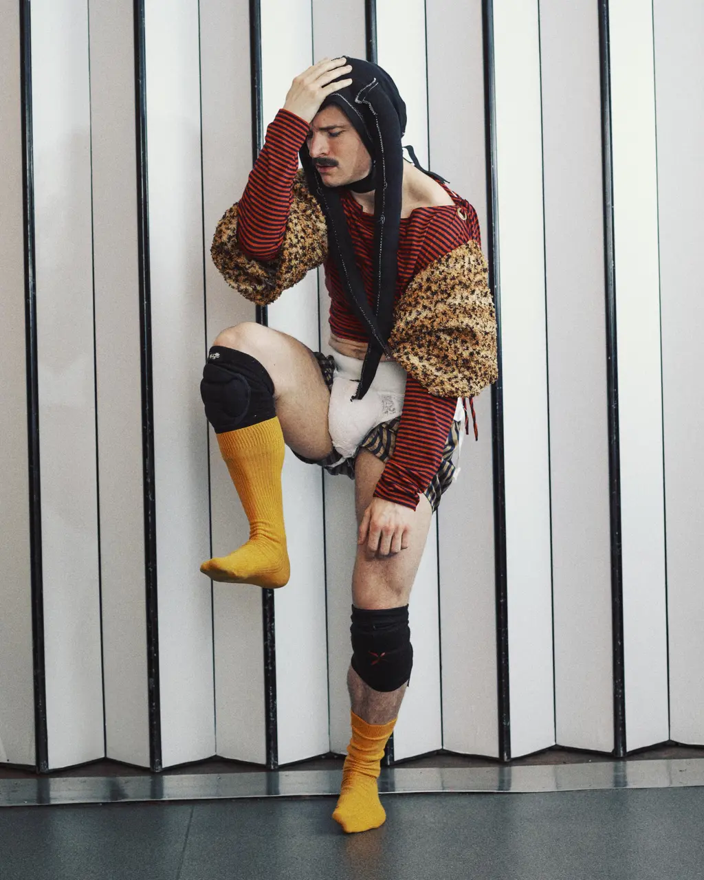 Costuming for this piece is its own magnificent journey: led by Emma Chopova and Laura Lowena-Irons of cult London brand Chopova Lowena, this collab has been brewing for a minute. “We’re big fans of Holly,” Chopova says. “She was in our SS20 campaign about roller derby girls. There’s an almost ritualistic, cult‑y, animalistic quality to her work. She’s the only thing in the dance world that’s ever truly been inspiring to me.”