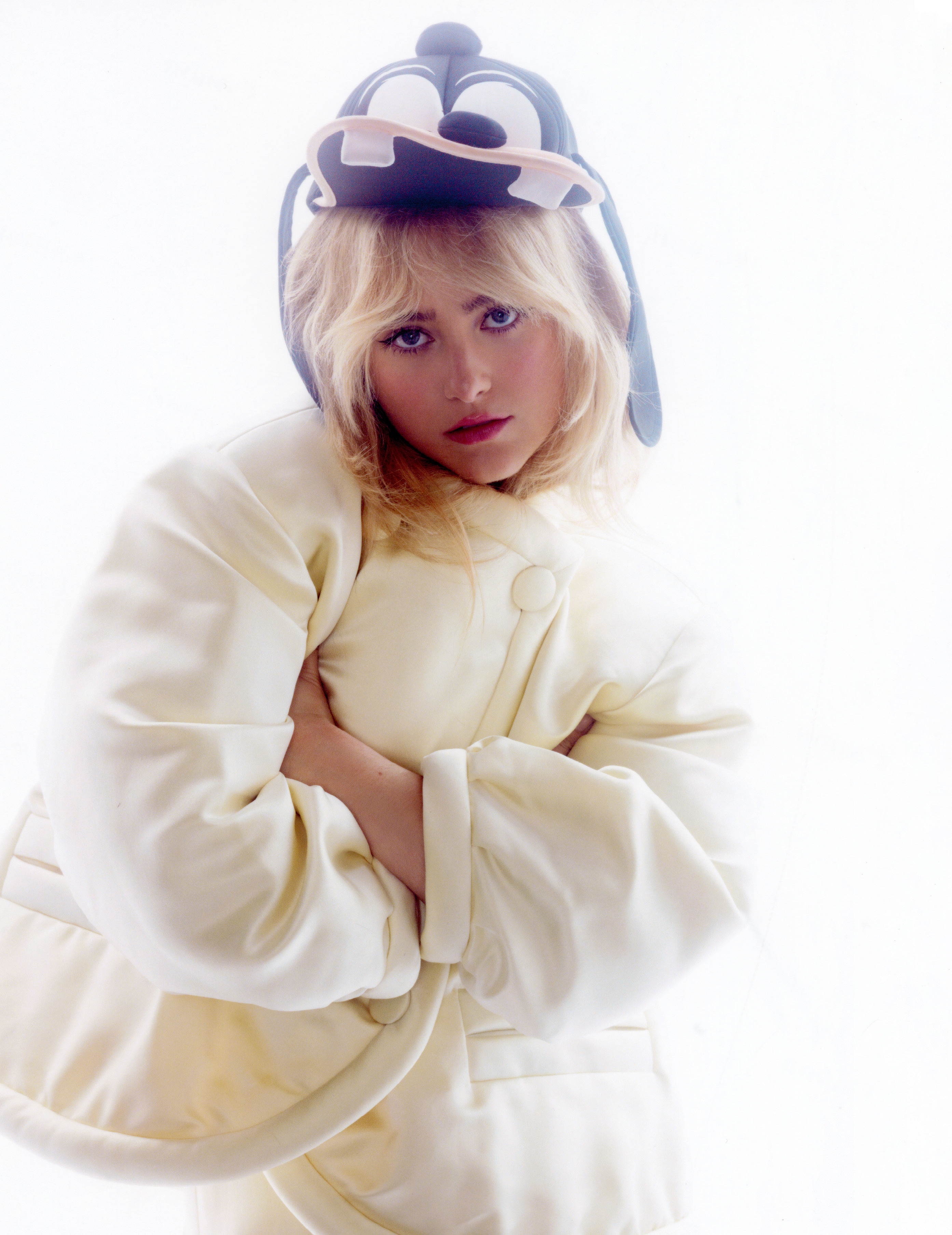 Gabbriette wears dress, apron and headpiece ATSUKO KUDO and bracelet stylist’s own