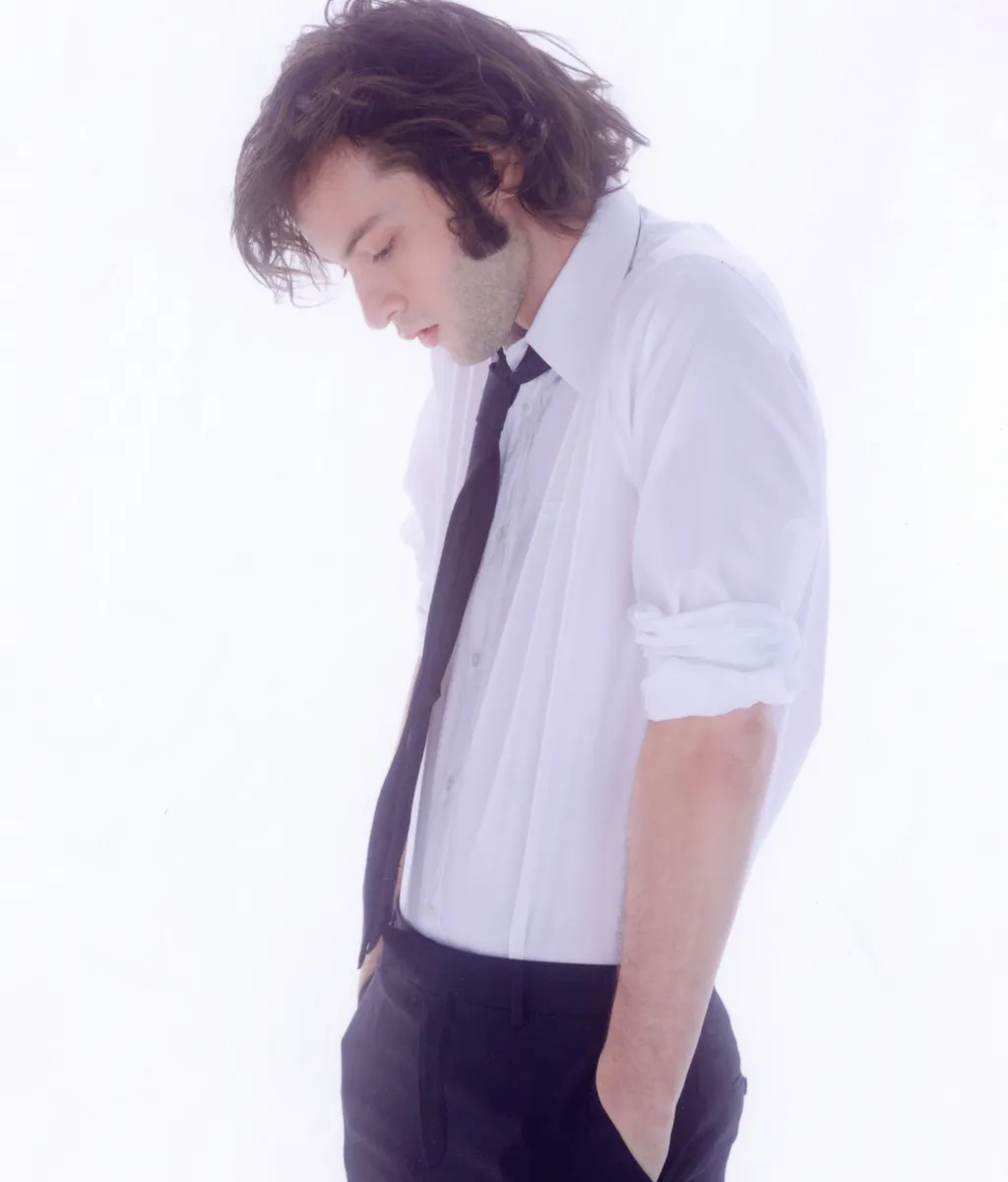 Dominic wears shirt, trousers and tie CELINE HOMME