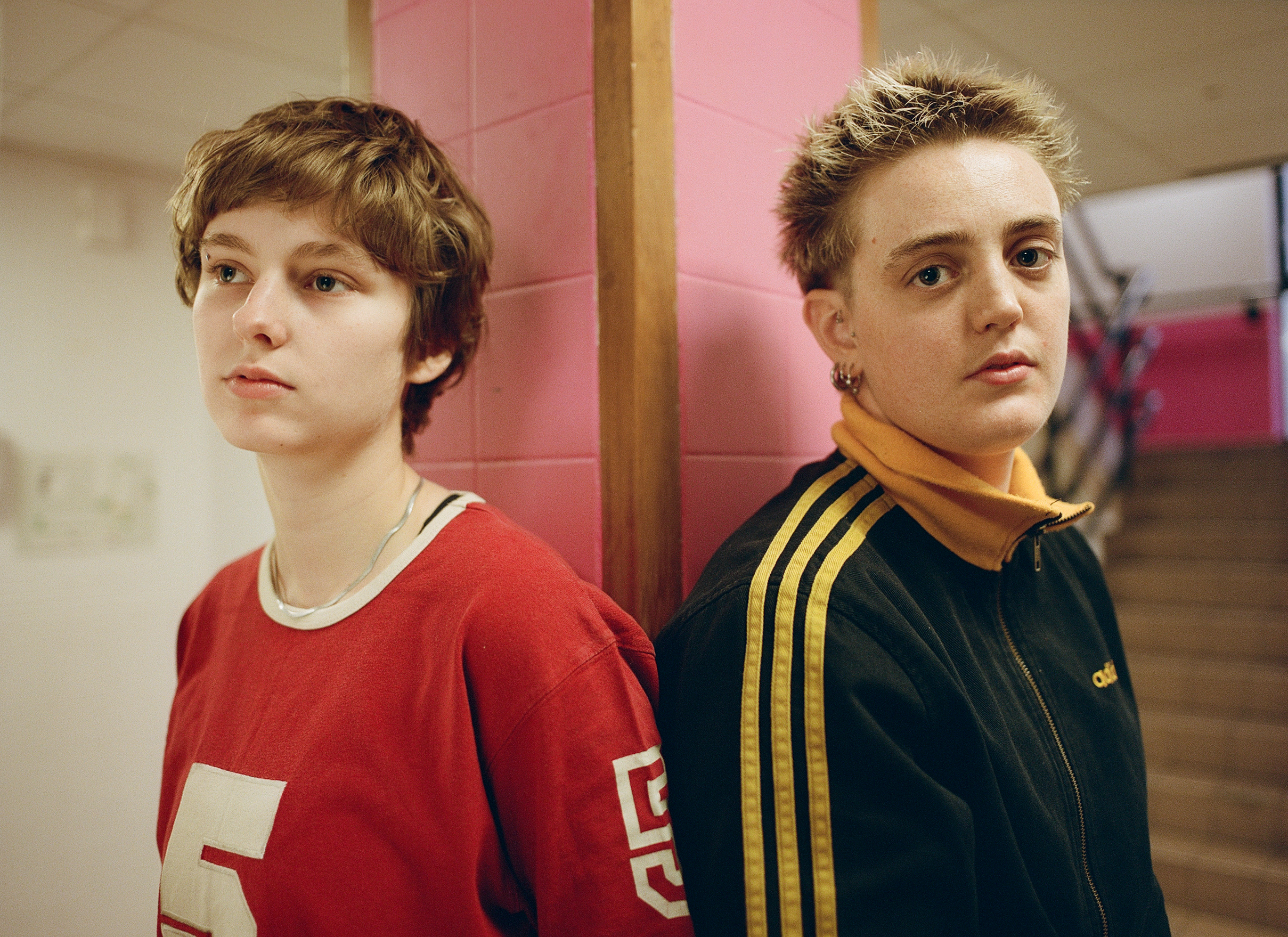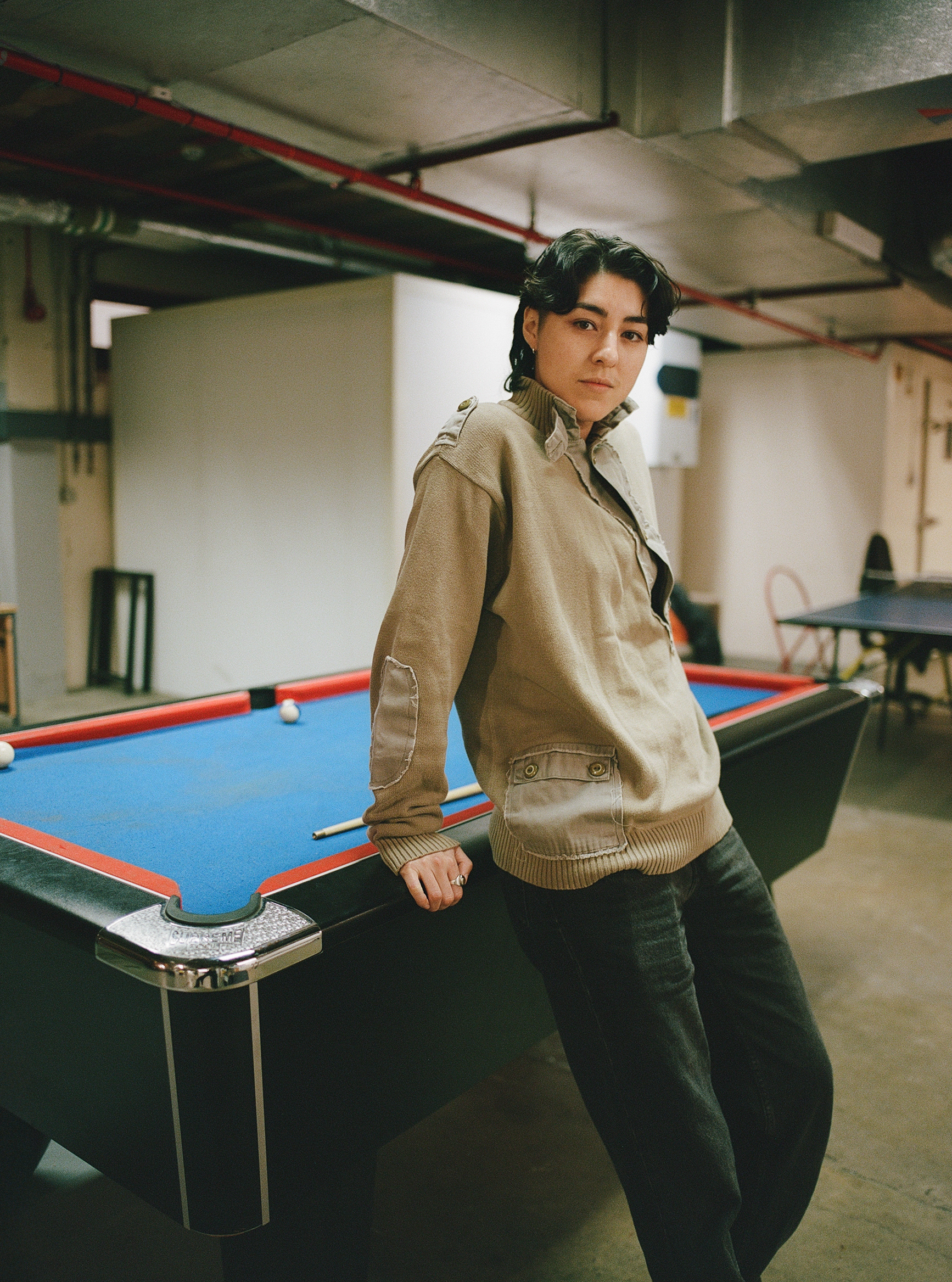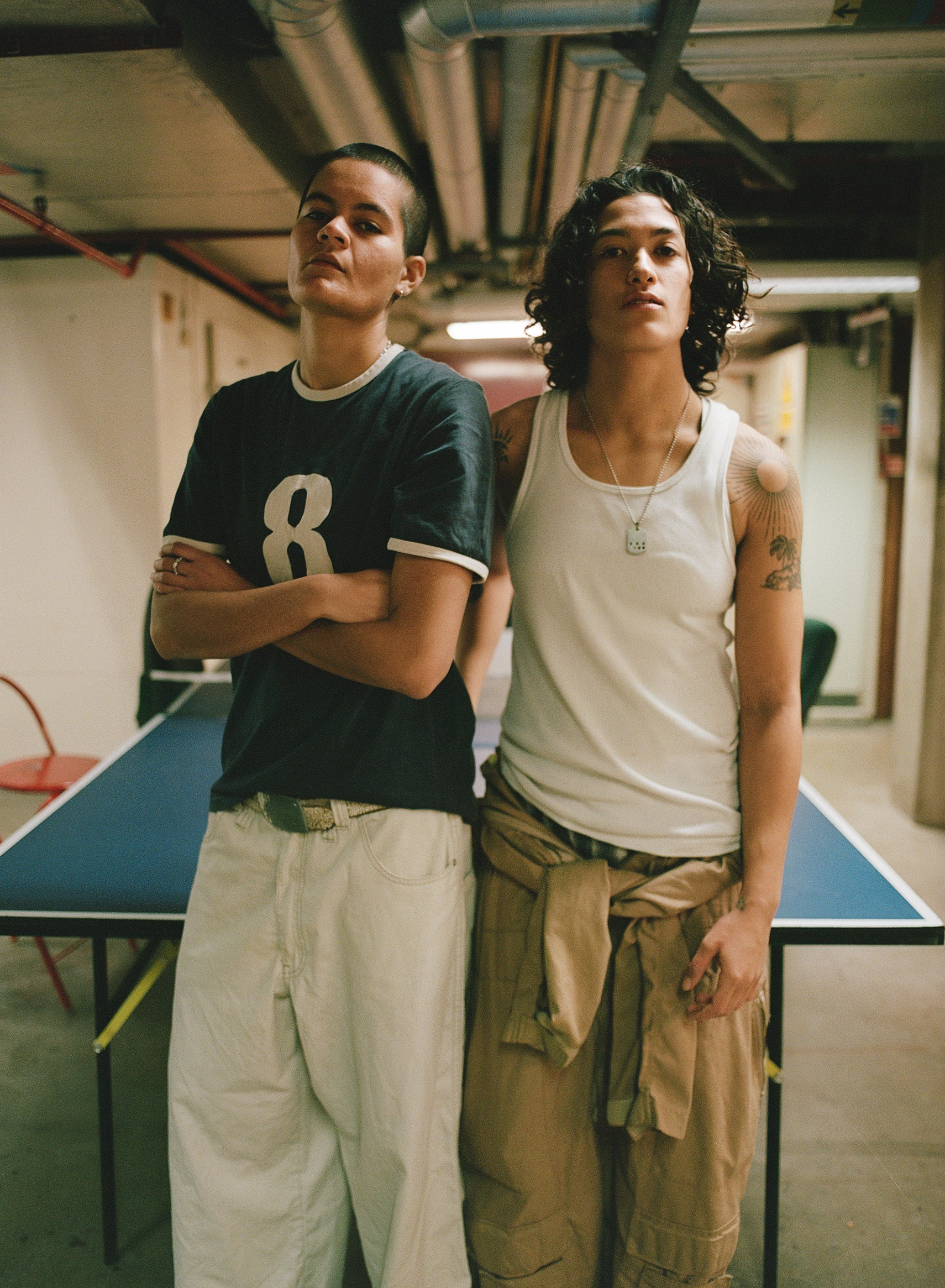 Shot last winter in an old hospital wing that hasn’t been updated since the ’80s, Indi – whose partner Kri was Homme’s first ever player – made use of its retro wood panelling, lino flooring and pool table to create a college dorm, fraternity-esque atmosphere, rewriting heteronormative narratives about who belongs in those spaces and displaying the way queer and trans people experience joy.