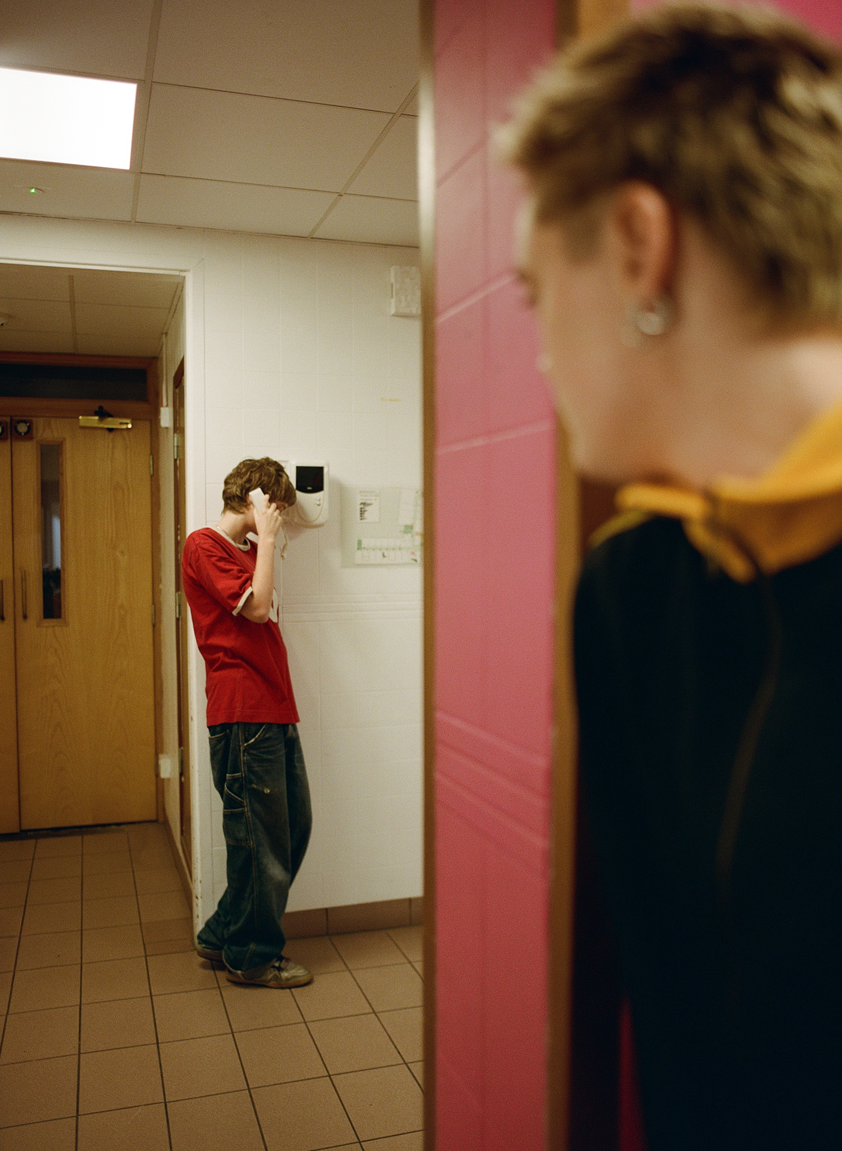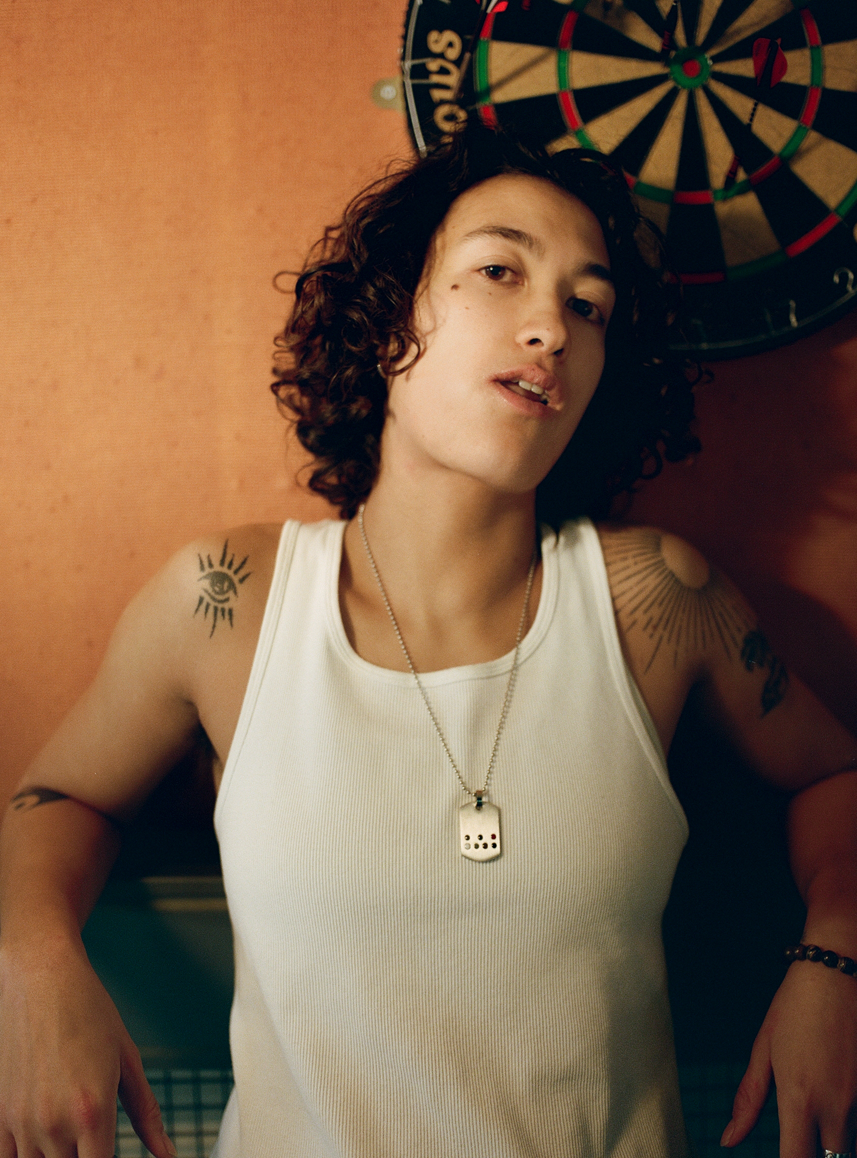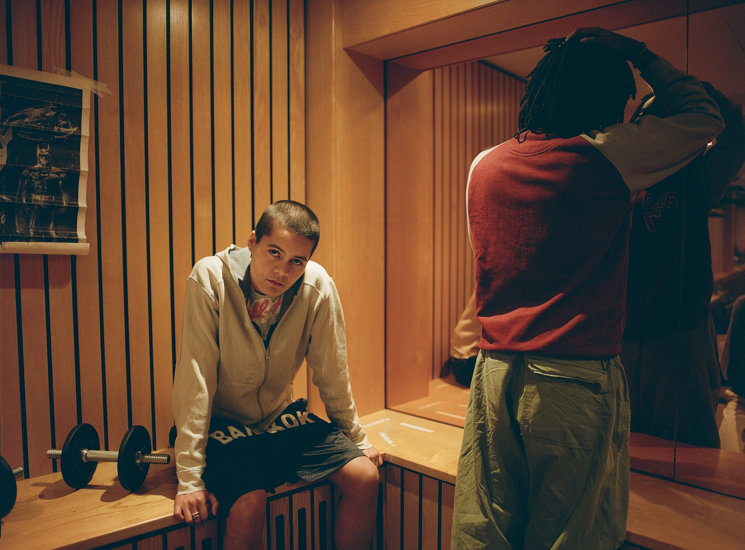 Shot last winter in an old hospital wing that hasn’t been updated since the ’80s, Indi – whose partner Kri was Homme’s first ever player – made use of its retro wood panelling, lino flooring and pool table to create a college dorm, fraternity-esque atmosphere, rewriting heteronormative narratives about who belongs in those spaces and displaying the way queer and trans people experience joy.
