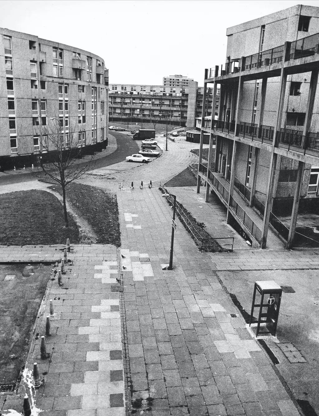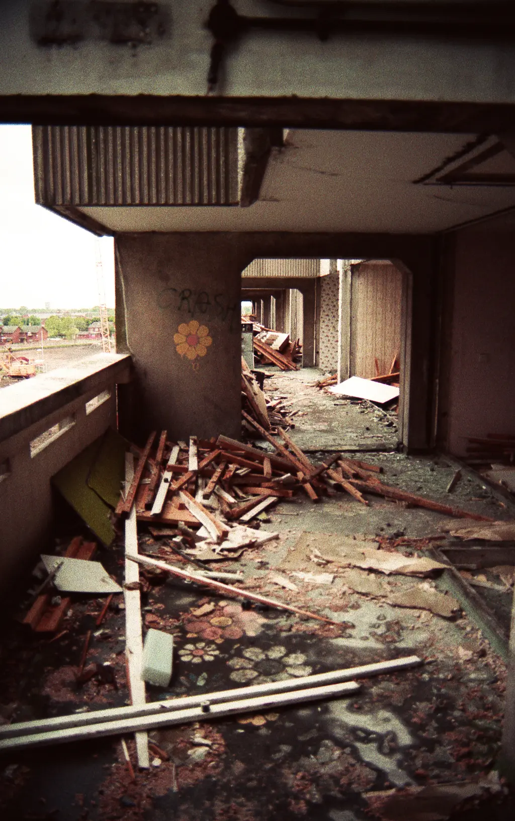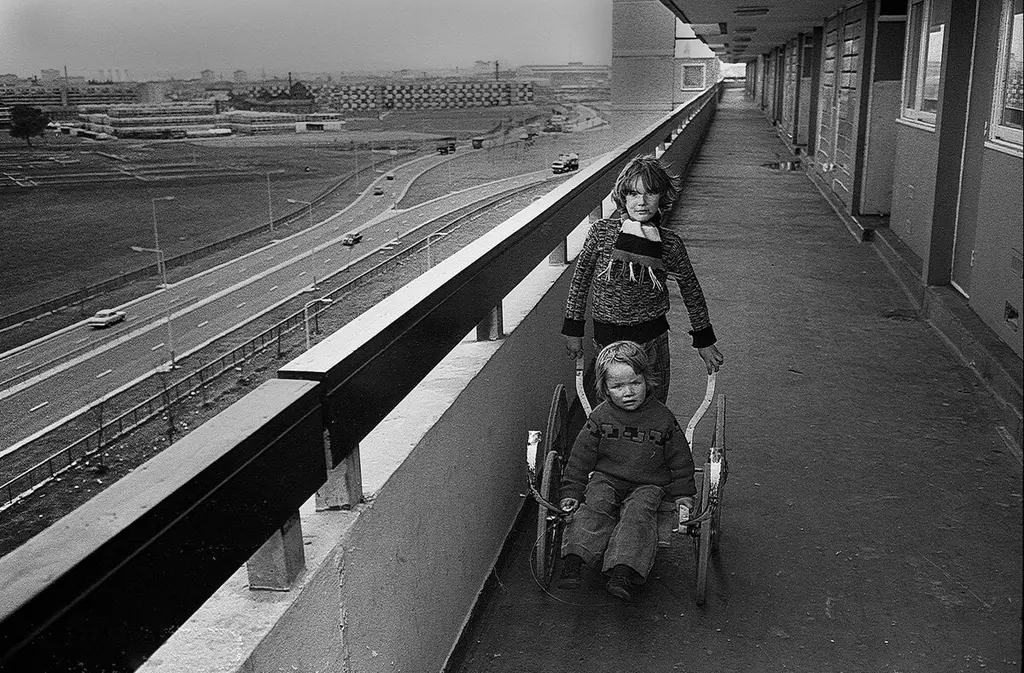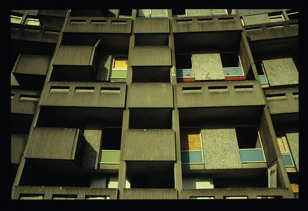 But by 1995, the Crescents had been demolished. Anne Worthington photographed the last days in the flats and the performance group she was part of, Dogs of Heaven, famously pushed cars off the top of the buildings as part of their final act.